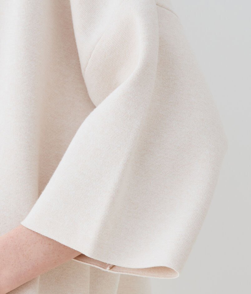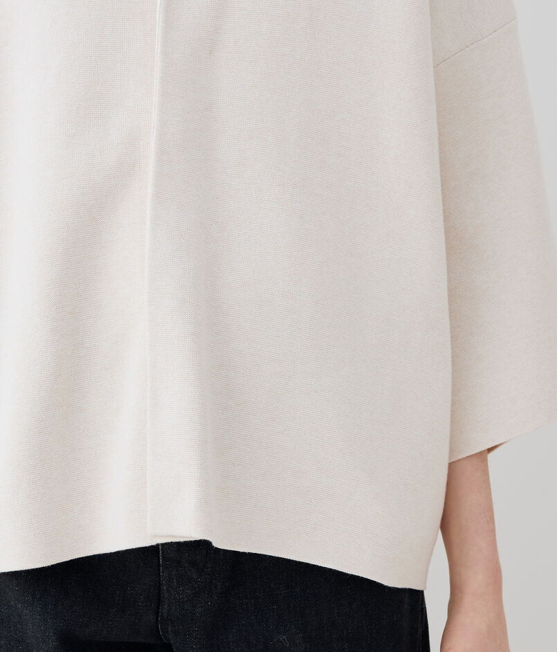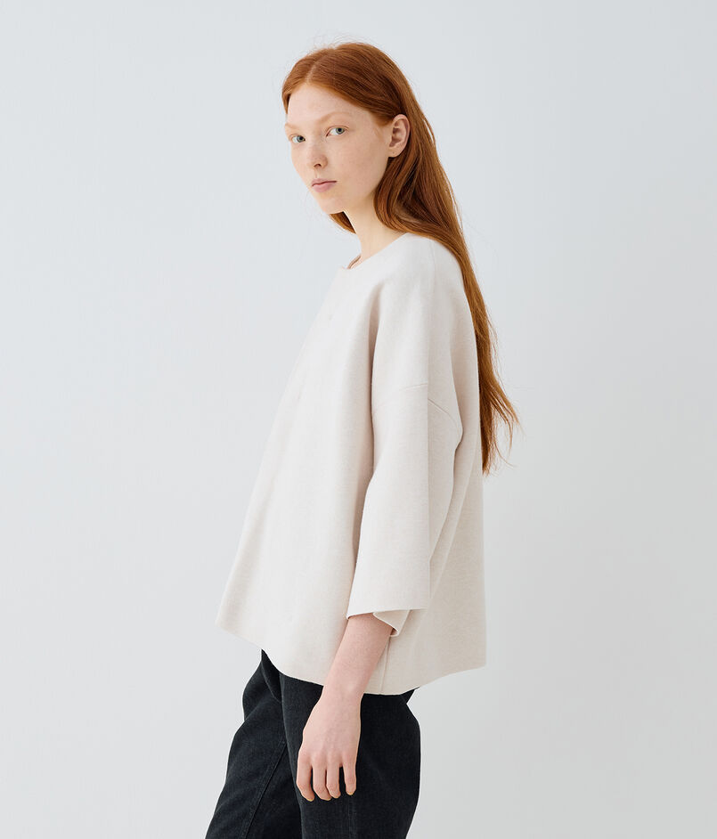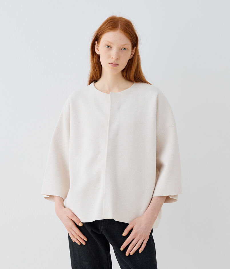 やや短めの袖丈で春らしい軽やかさがあり、きれいめからカジュアルまで幅広いスタイリングに活躍してくれる一着。