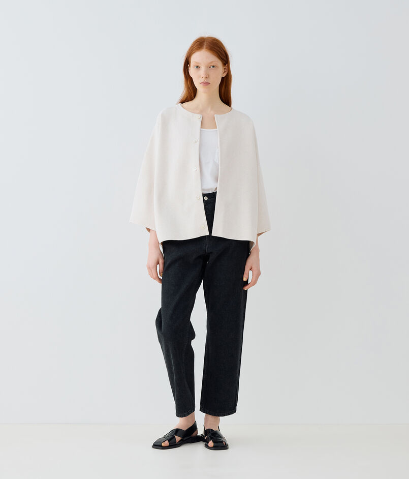 ゆったりとしたボックスシルエットのジャケット。