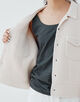 ドロップショルダーでアームホールは大きくし、モダンなバランスに仕上げています。