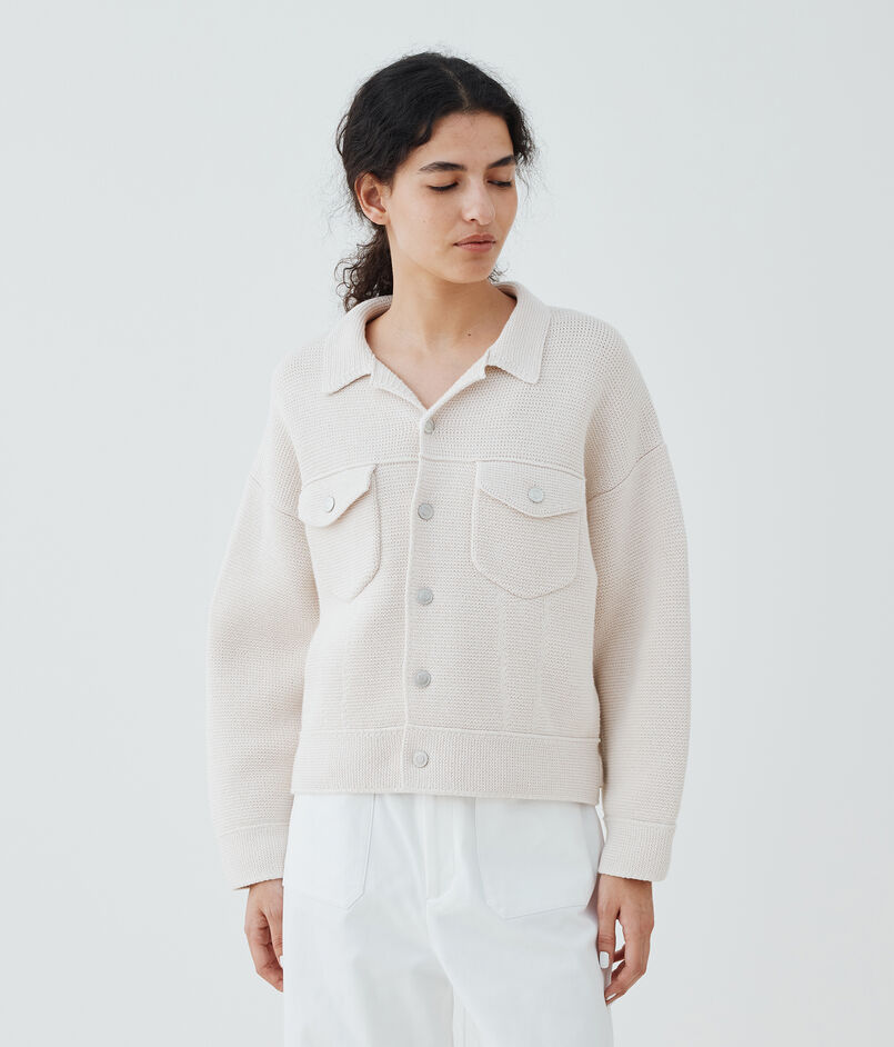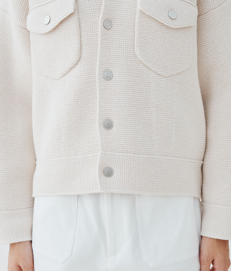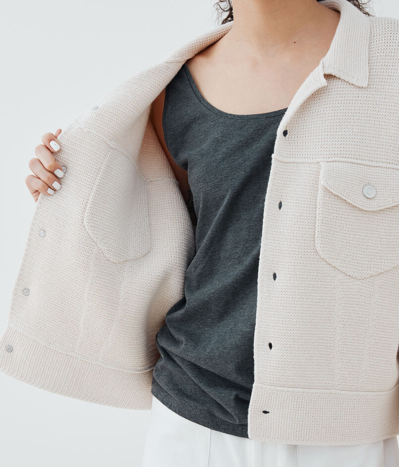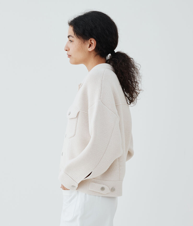 ニットならではの伸縮性でストレスフリーで着用でき、さらりと羽織るだけでスタイリングが決まる今季おすすめのアイテム。