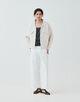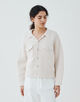 フィールドジャケットのようなオープンカラーのデザインで抜け感たっぷりの一着。