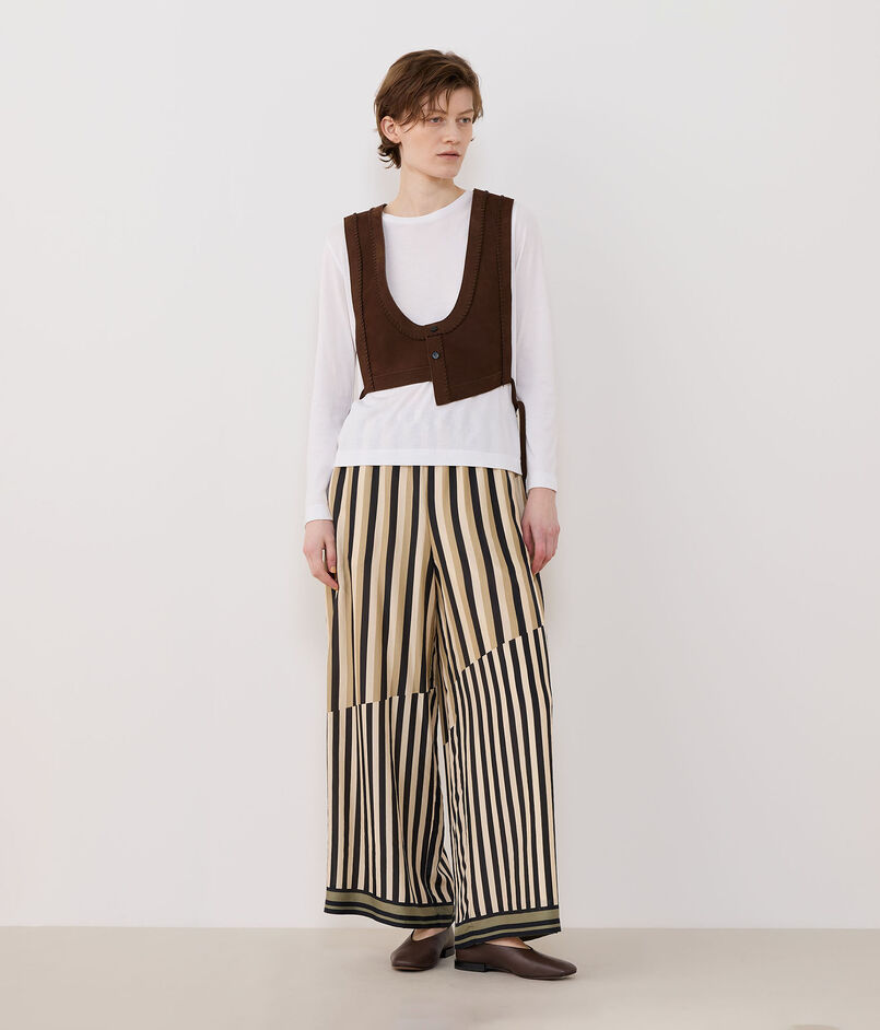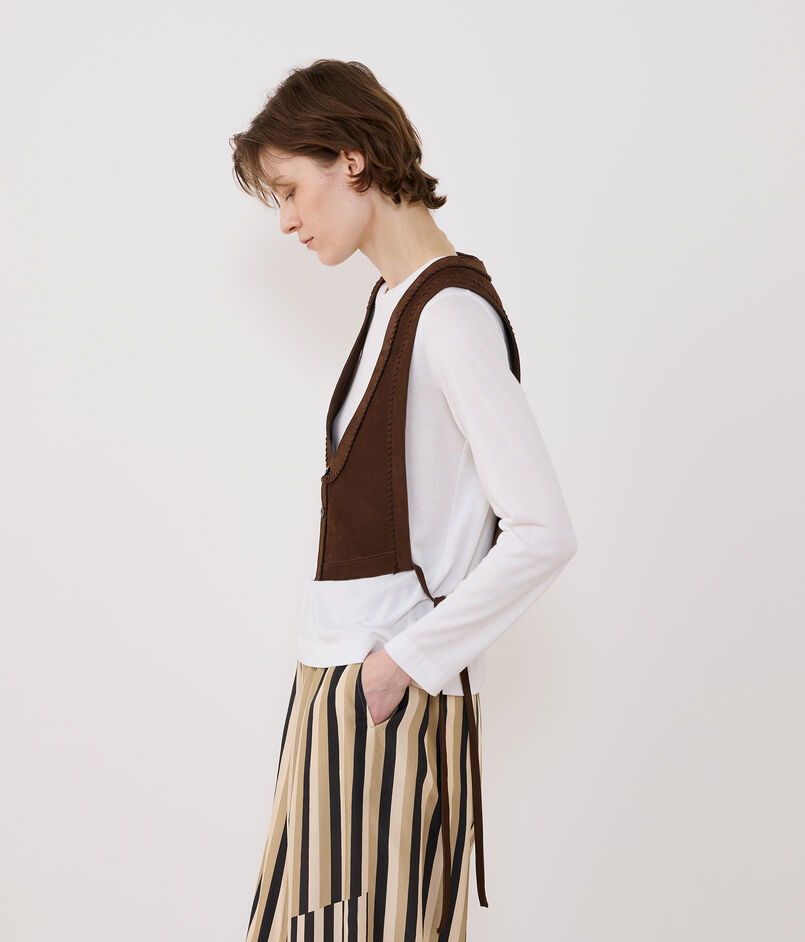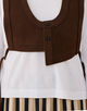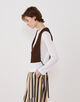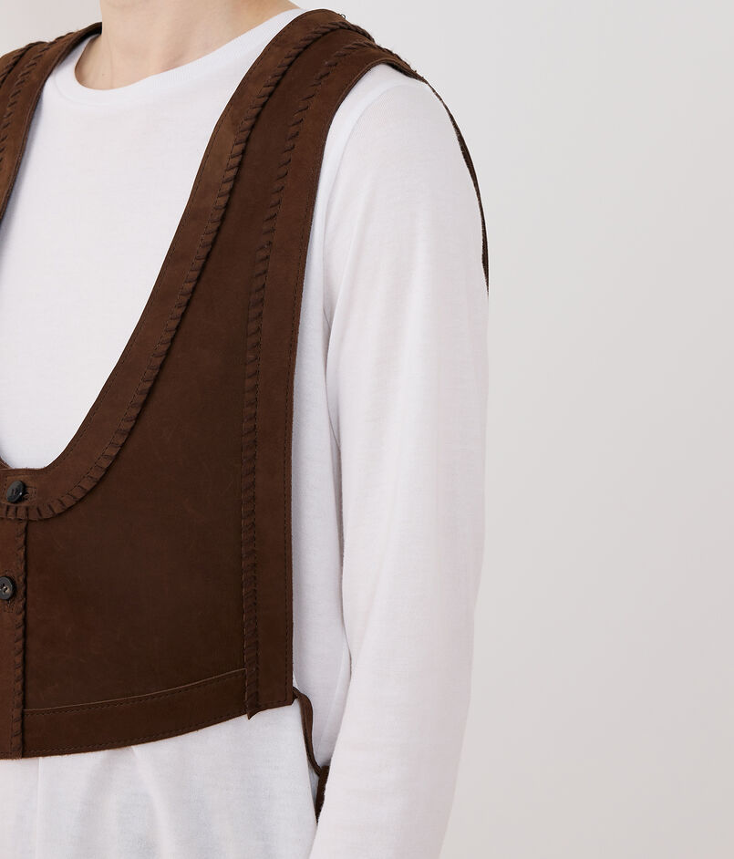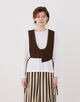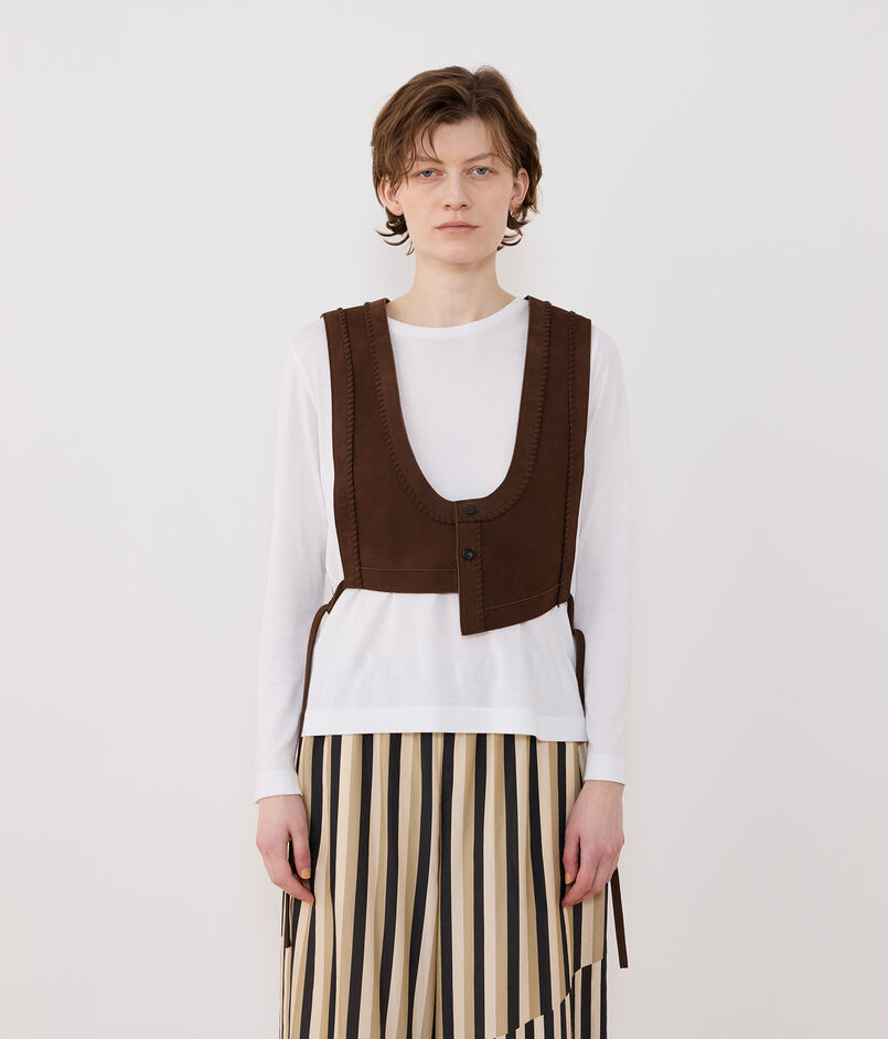 まるで一枚の布をふわりと肩にかけたような、動きとニュアンスを楽しめるアシンメトリーベスト。