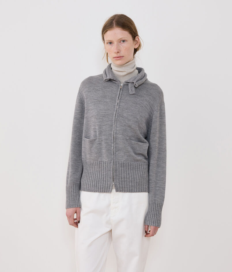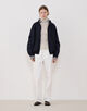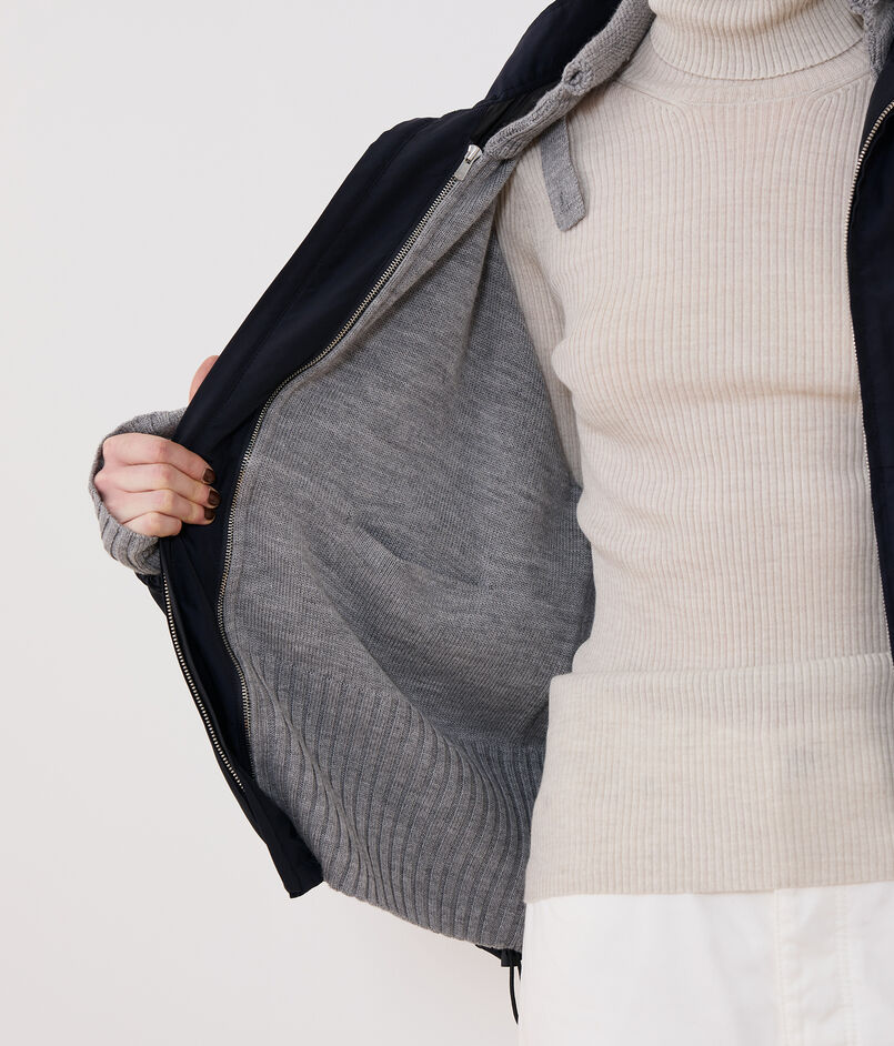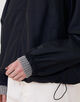 トラックジャケットはラグランスリーブのスポーティーなアウターに取り外し可能なニットライナーをセットしました。