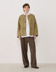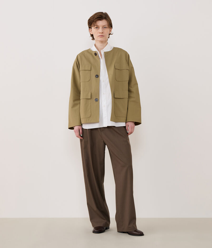 ジャケットはクルーネックとボクシーなフォルムがシンプルかつクリーンな印象の一着。