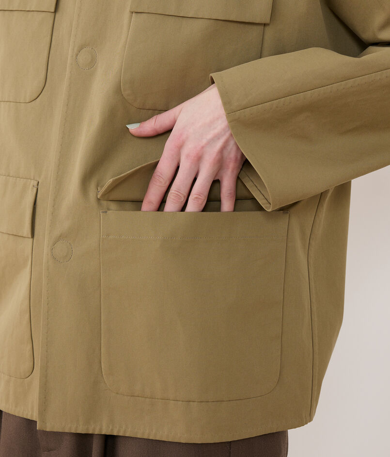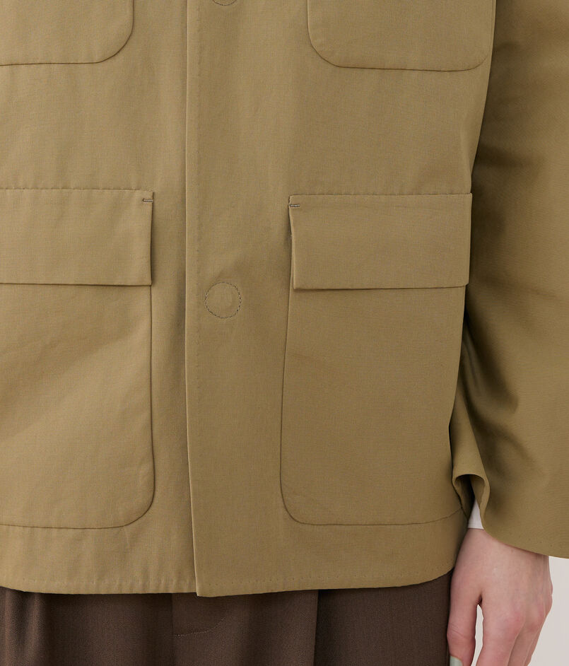 フロントに大きなフラップポケットが四つも施されていながらステッチの無いミニマルな仕上がりで主張し過ぎす、どんなスタイリングにも馴染みます。