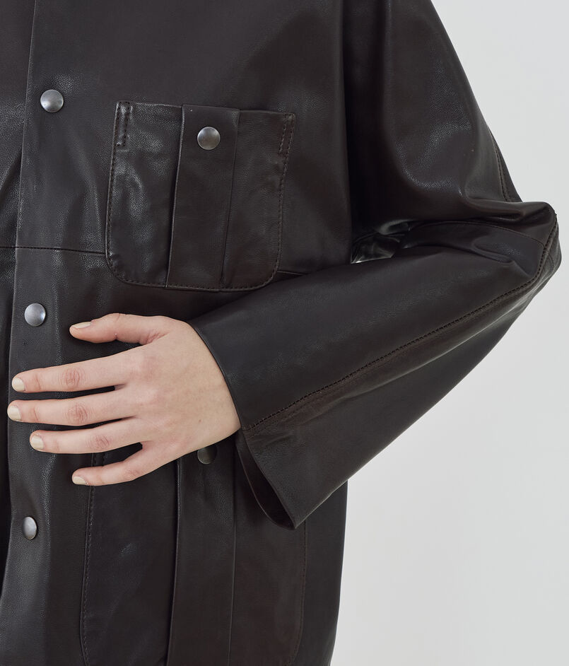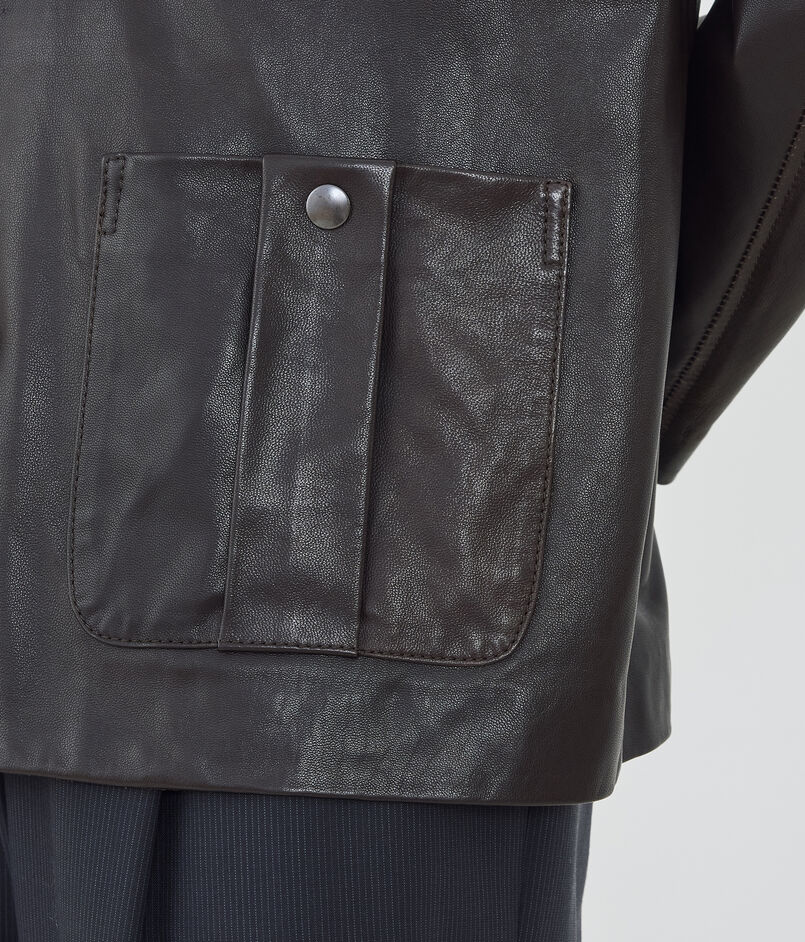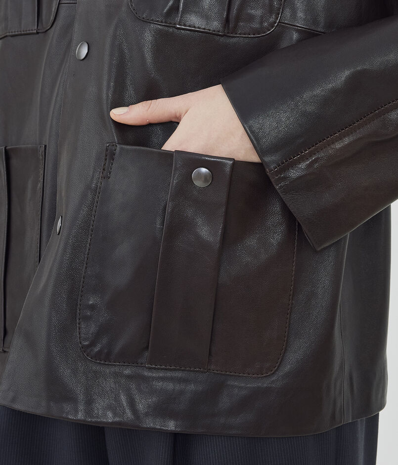 深みのあるダークブラウンと上品な艶が美しいジャケット。