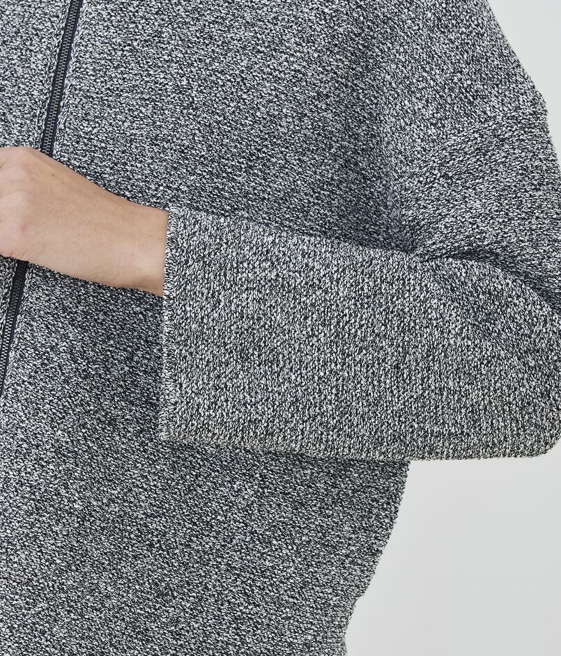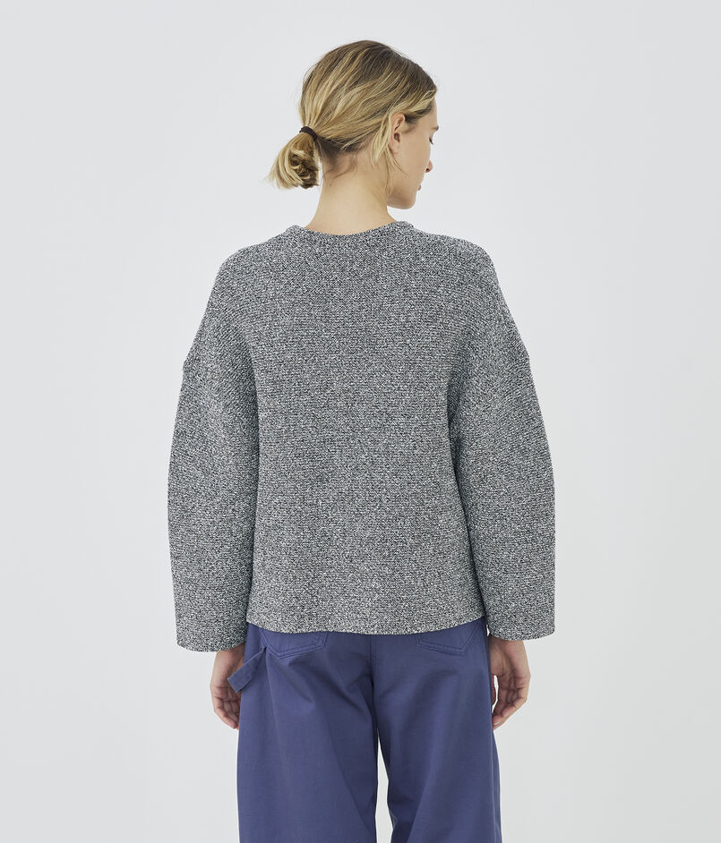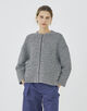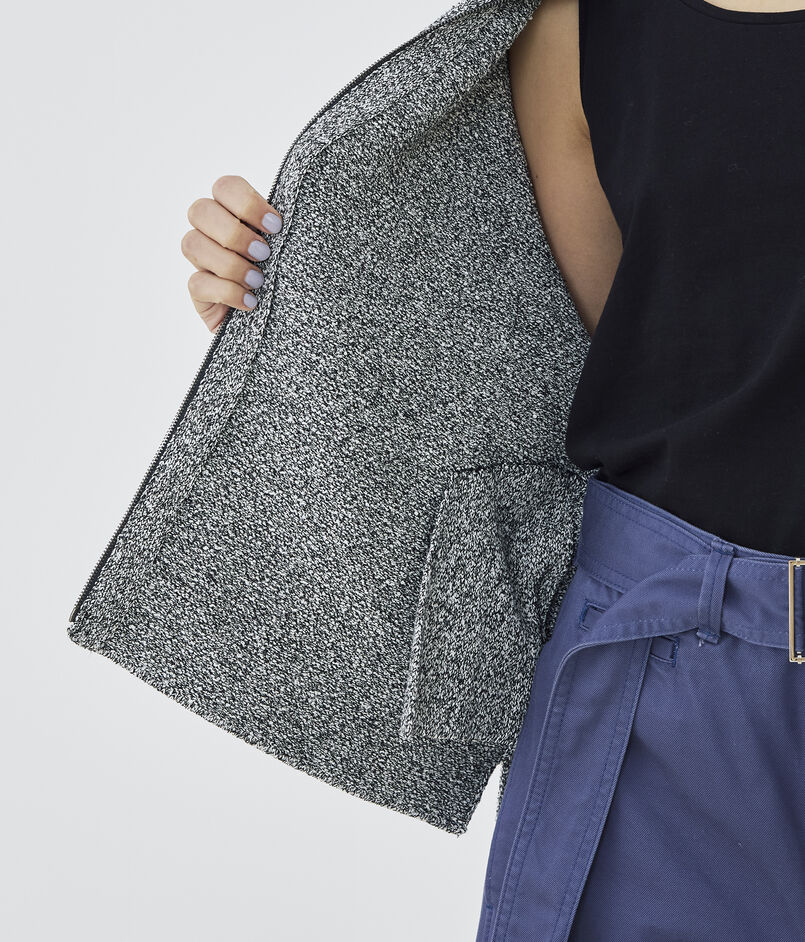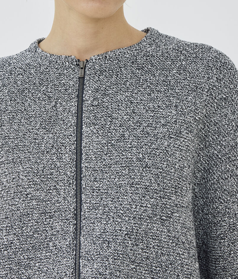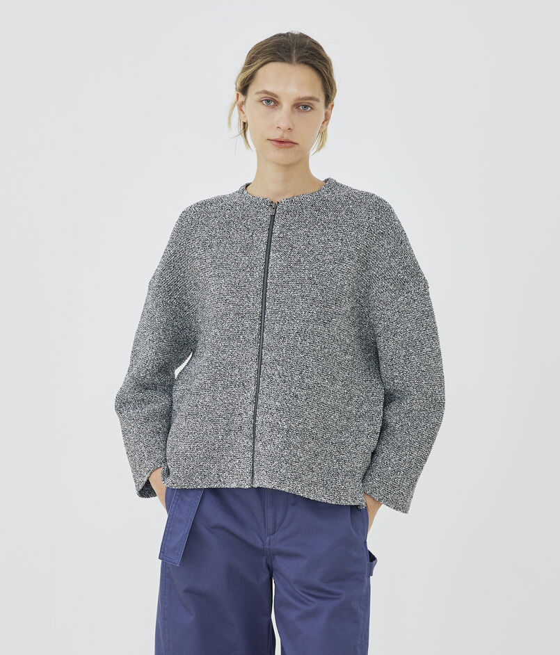 和紙とコットンブークレー糸を使用して編み立てたツイードライクなニットブルゾン。