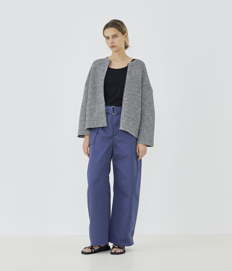 絶妙なミックスカラーでカジュアルにもシックにも表情を変え、ライトアウターとして幅広いスタイリングで活躍してくれるアイテムです。
