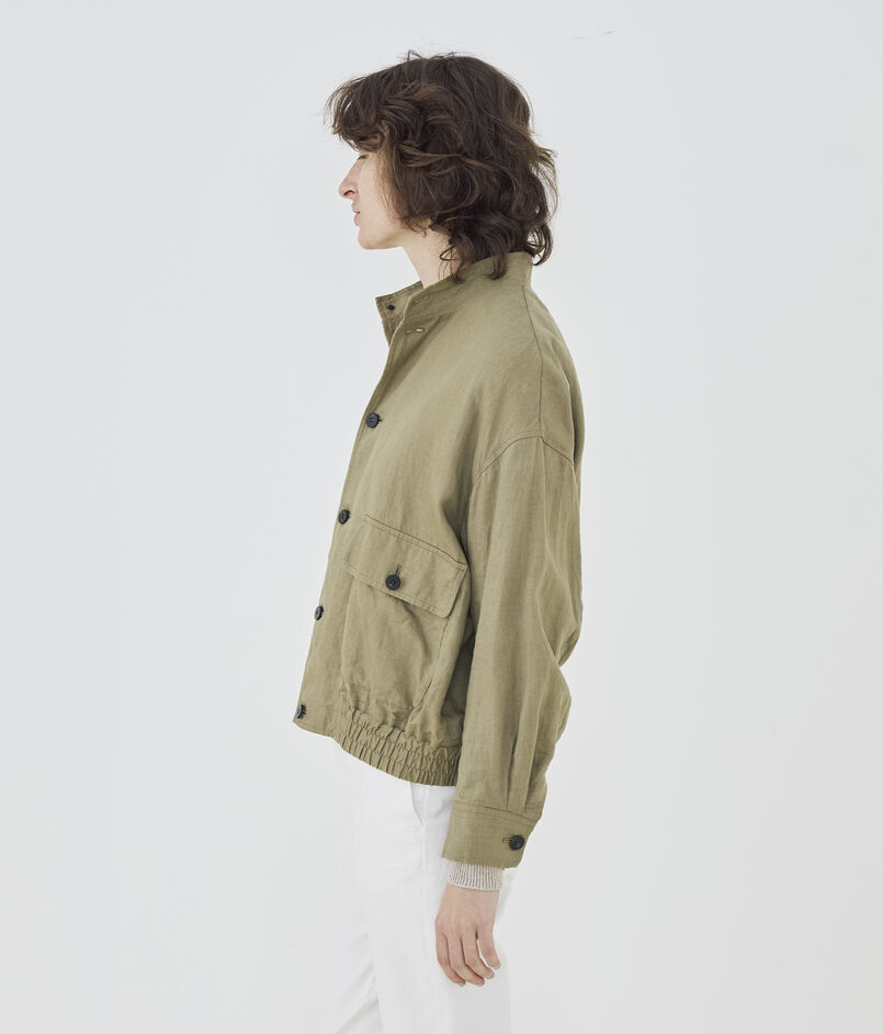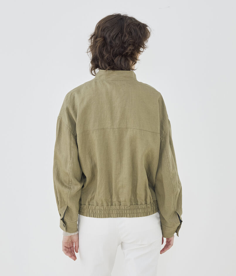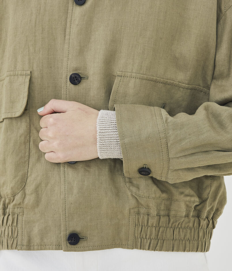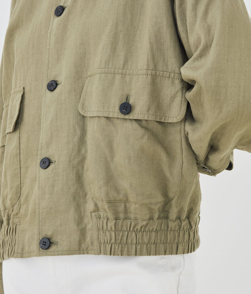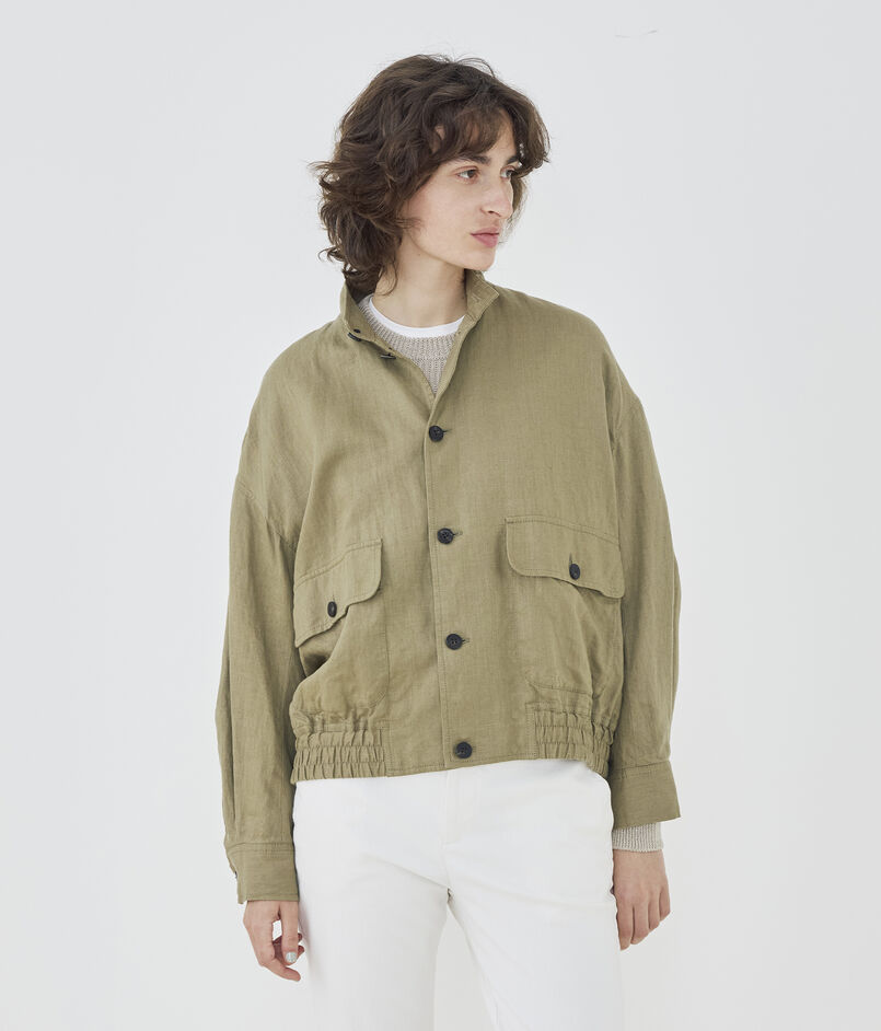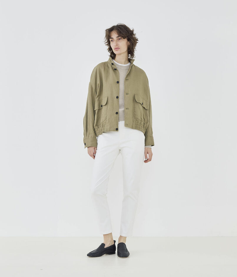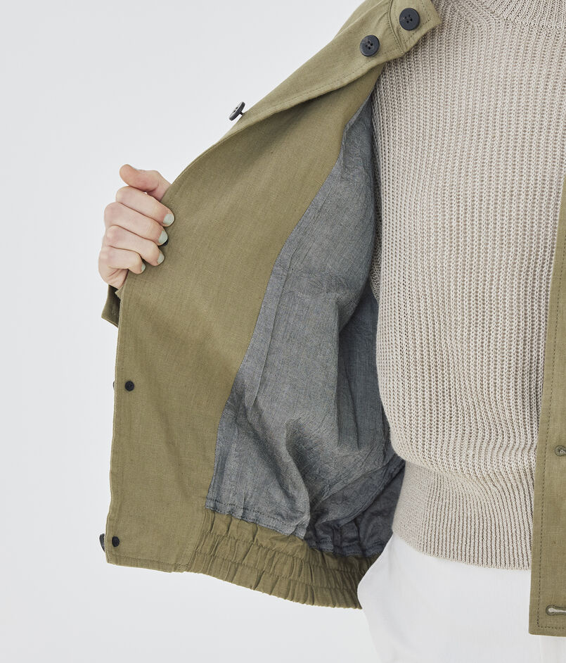 ブルゾンはトラックジャケットを思わせるスタンドカラーがすっきりとした印象の一着。