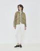 裾にはギャザーを寄せてふんわりとしたフォルムにしつつ、スポーティーになり過ぎないようフロントはボタンディテールに仕上げました。