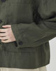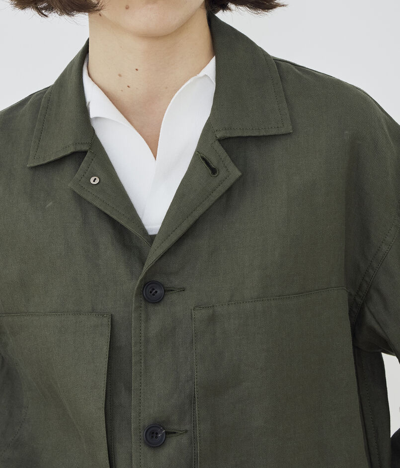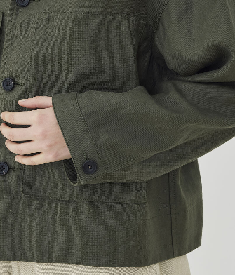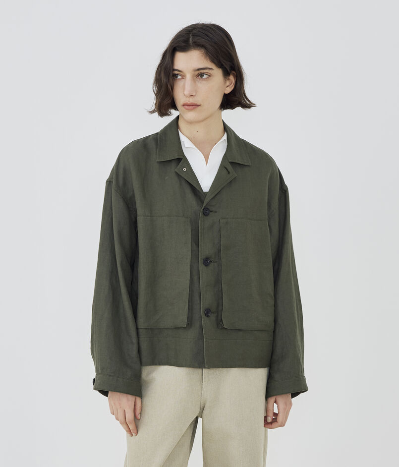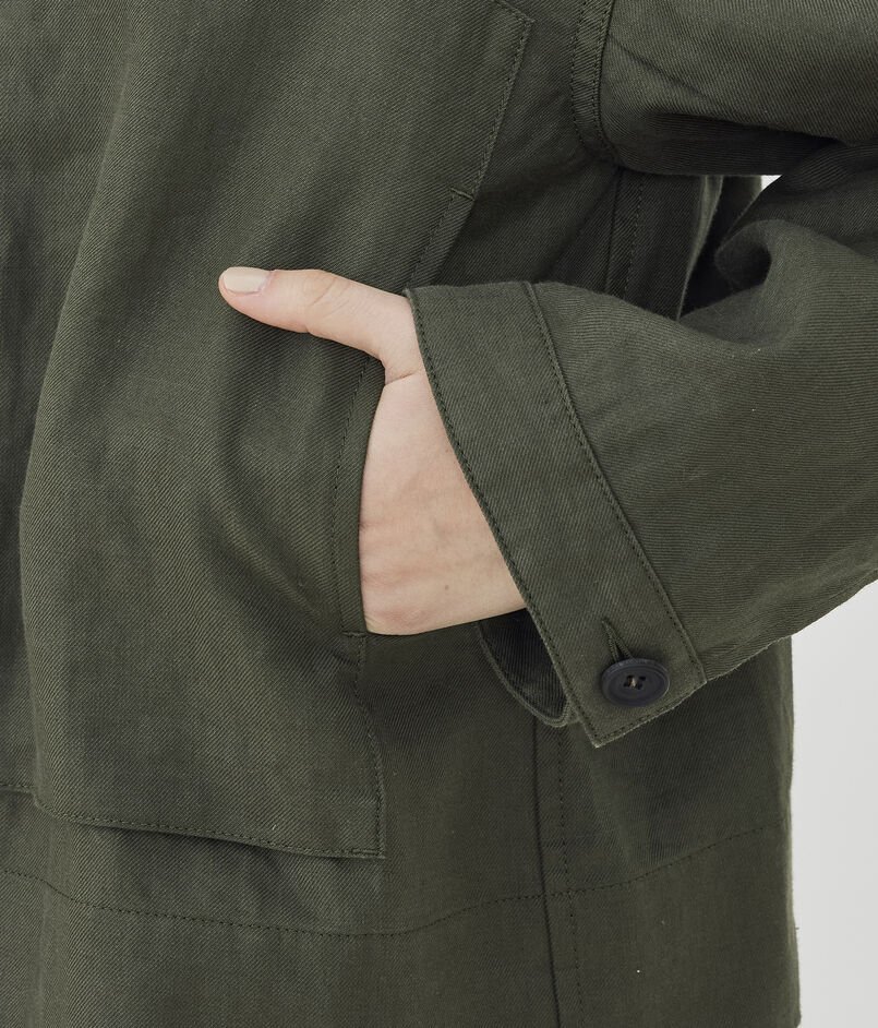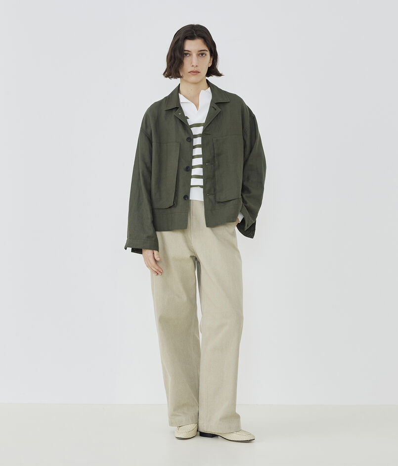 ブルゾンはフィールドジャケットをベースにしたデザインで、大きなマチ付きポケットが印象的な一着。