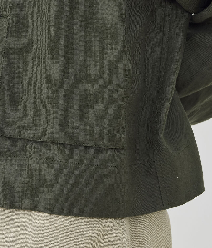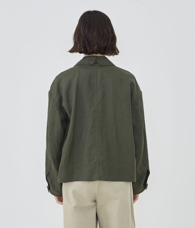 バックの襟が重なるディテールが立体感を生み、後ろ姿のさりげないアクセントに。