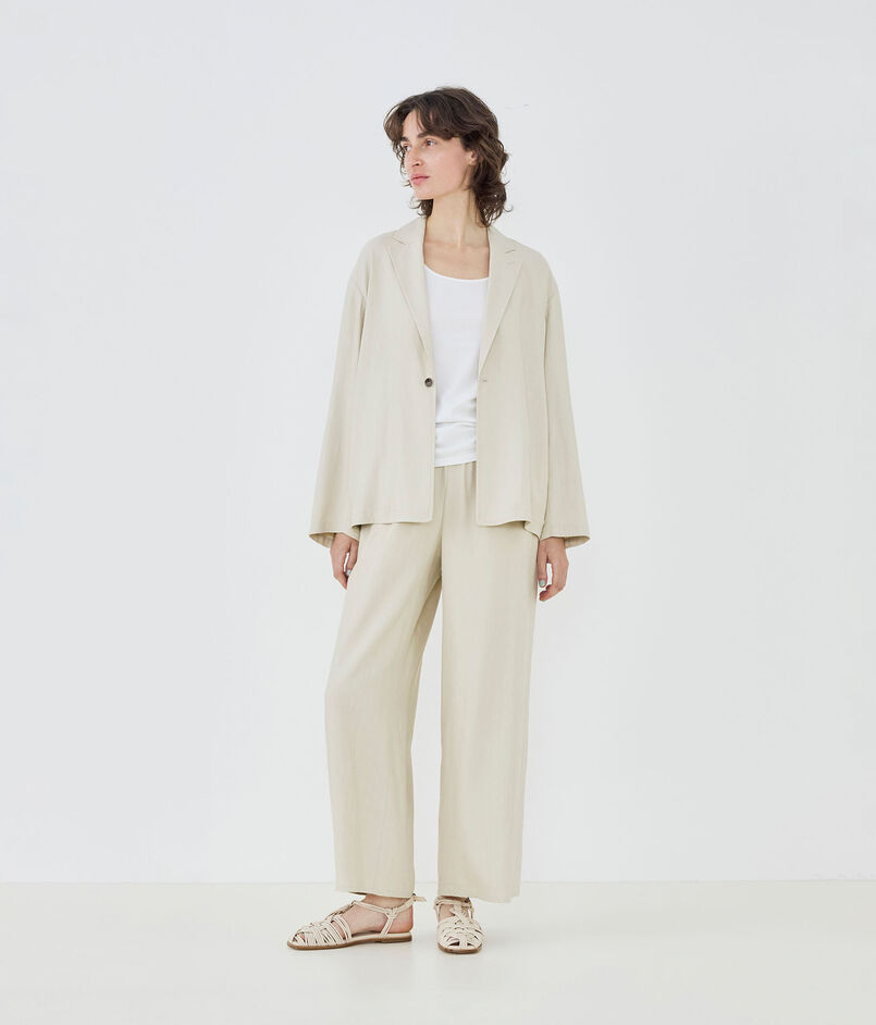 レーヨンリネンストレッチ ドロップショルダージャケット