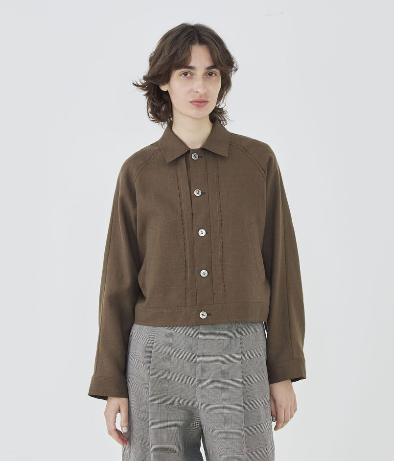 フレンチリネン プリ―テッドジャケット