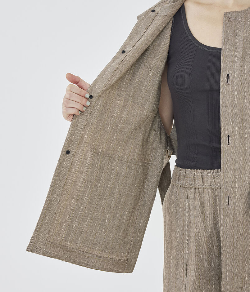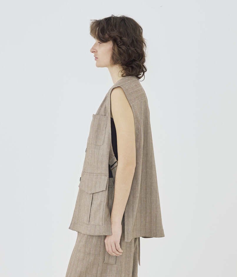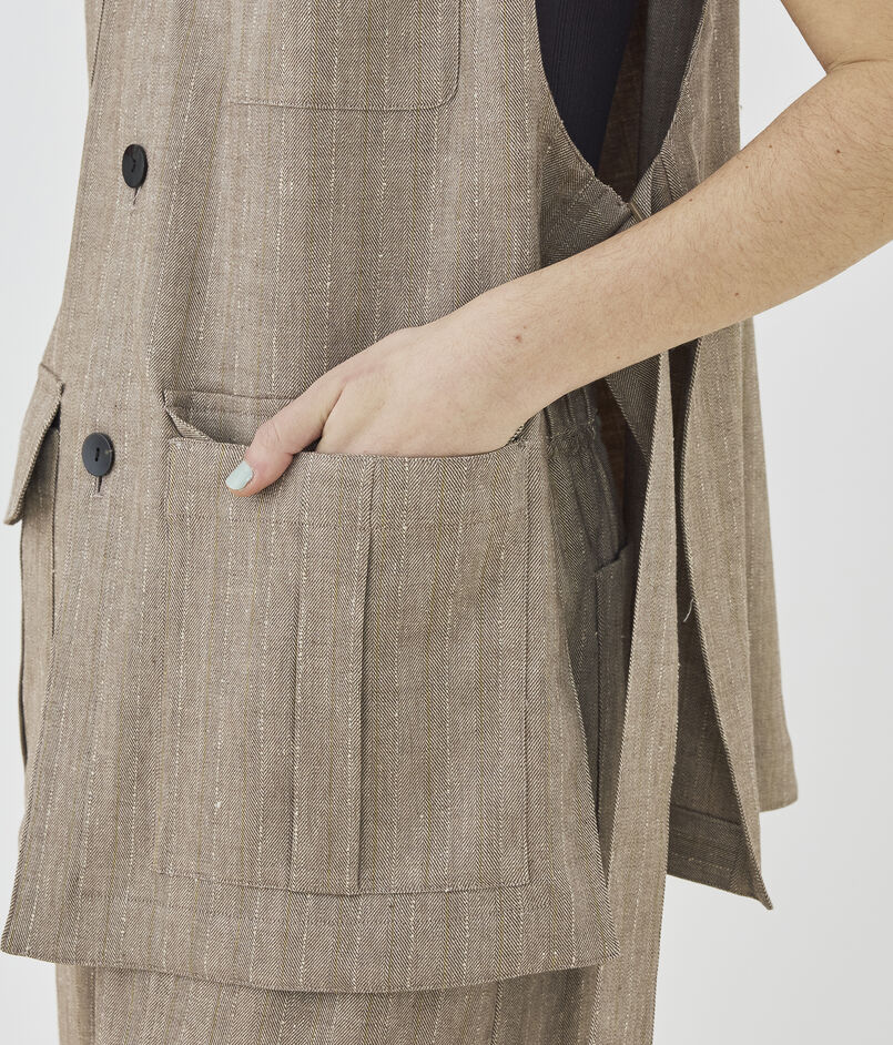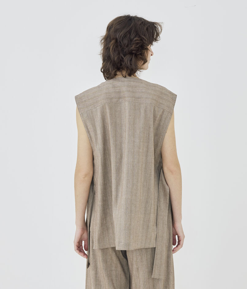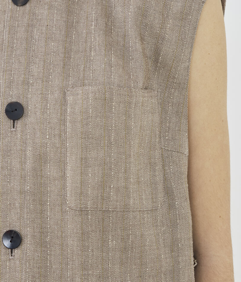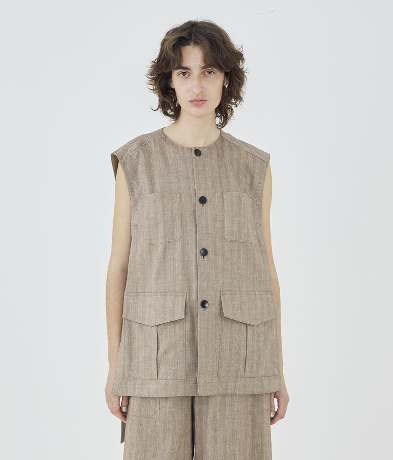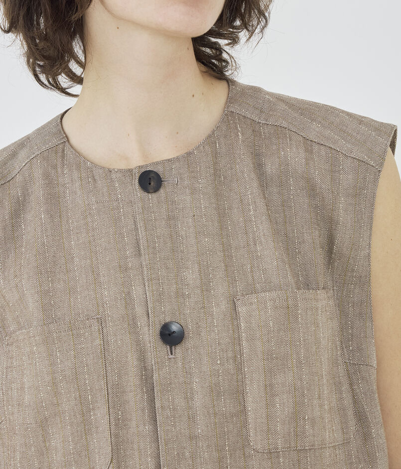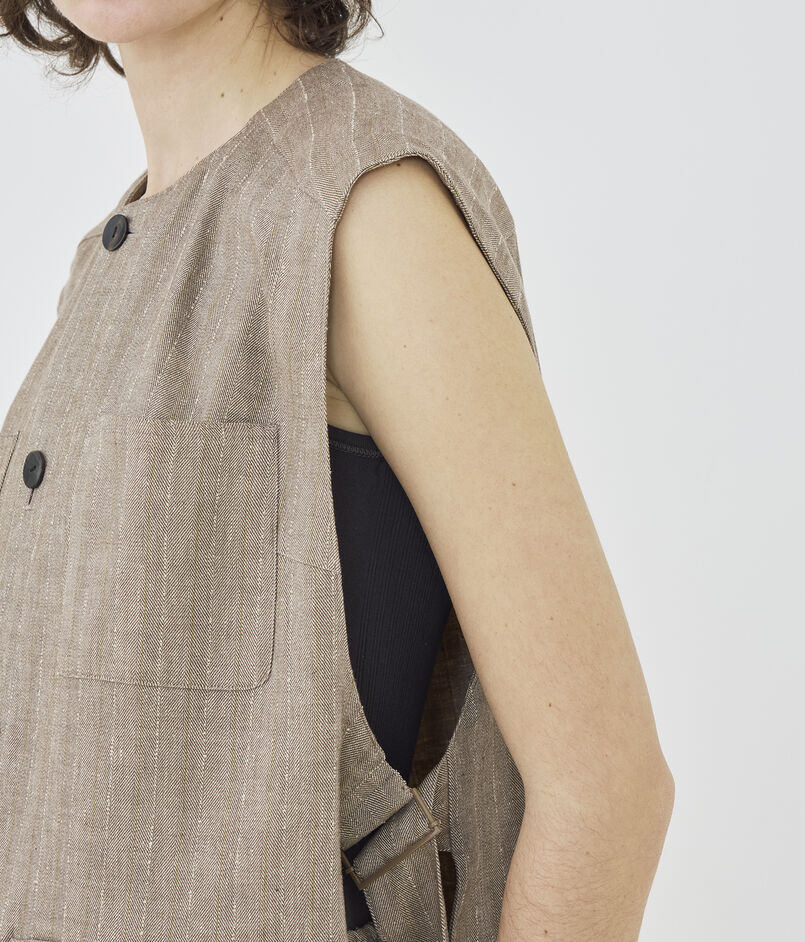 リノシャンブレーストライプ クルーネックジレ