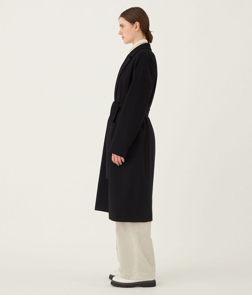 柔らかな印象に仕立てられたテーラードカラーのコート。