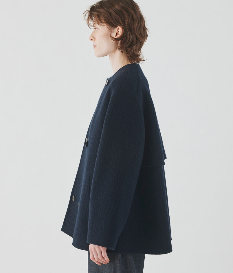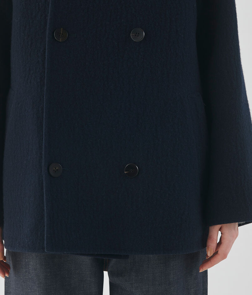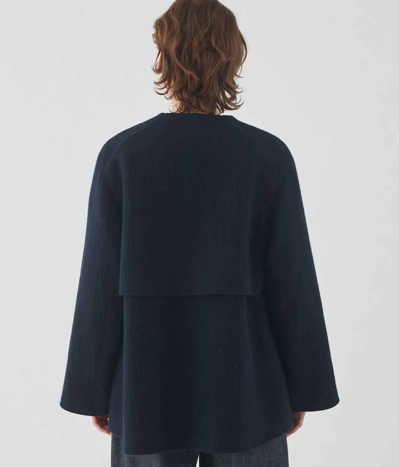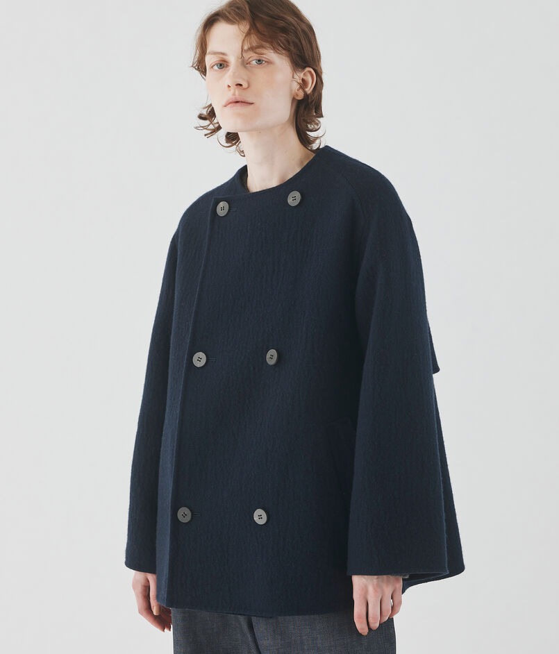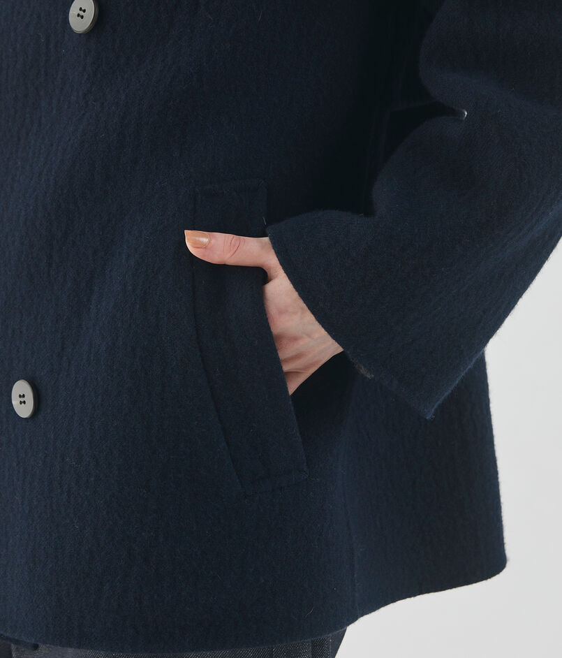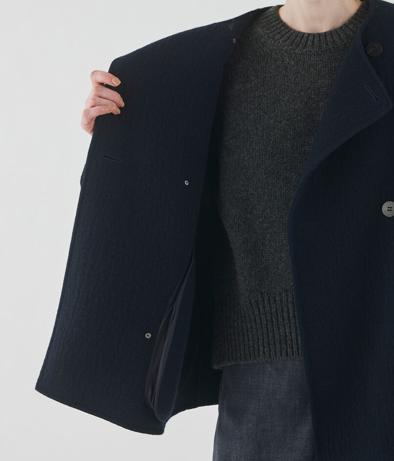上質なウールを使用し織り上げた、軽く表情豊かな二重織り素材のショートコート。