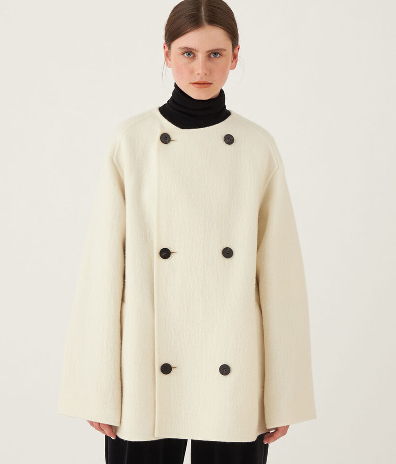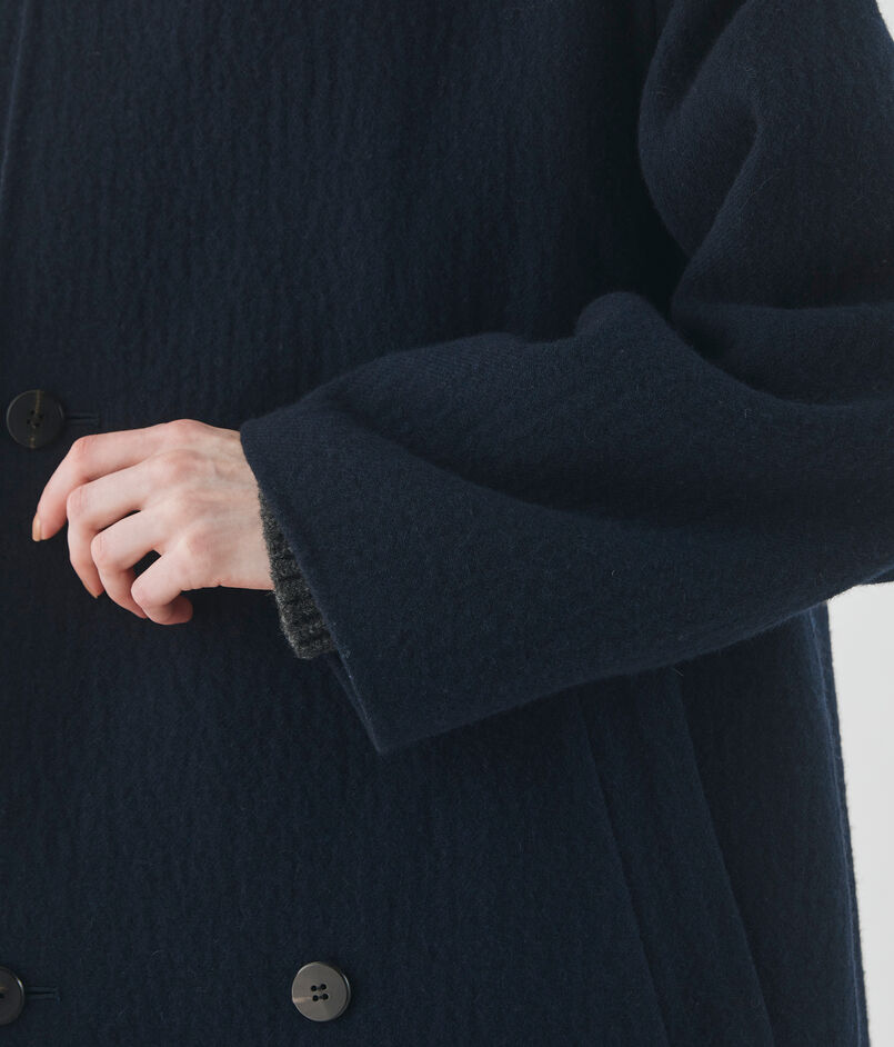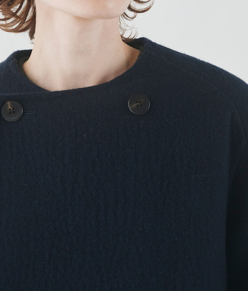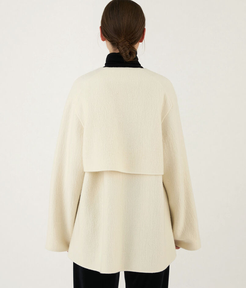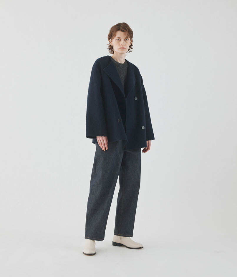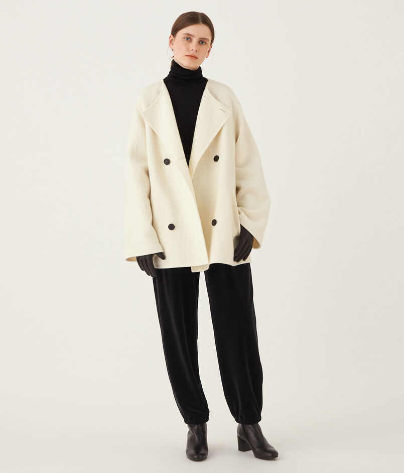 上質なウールを使用し織り上げた、軽く表情豊かな二重織り素材のショートコート。