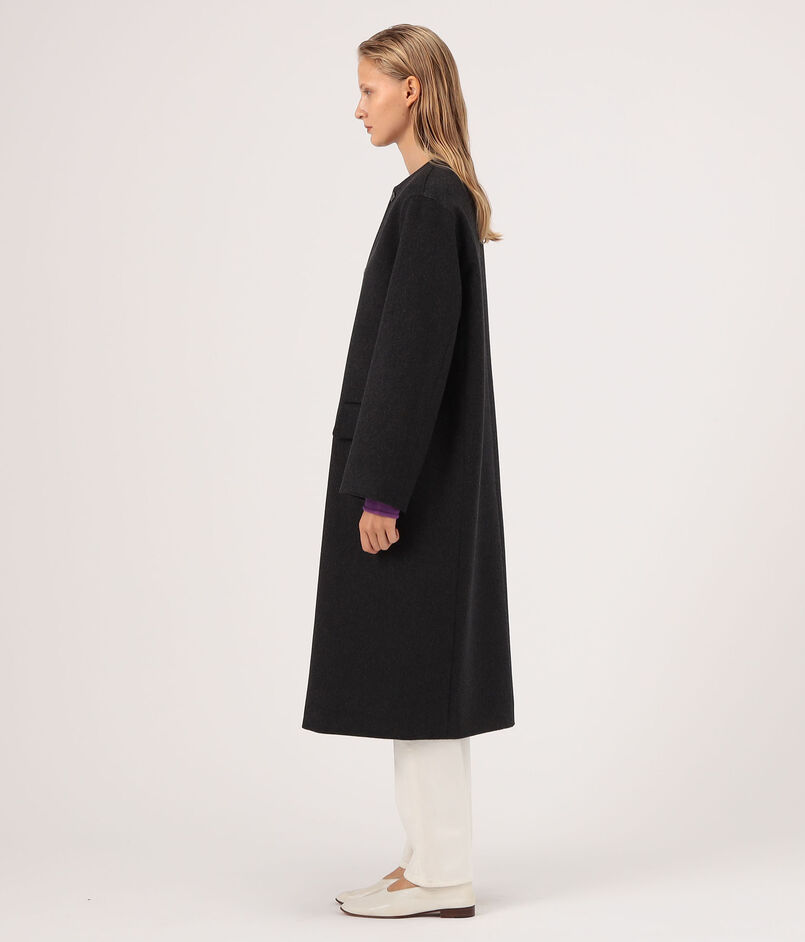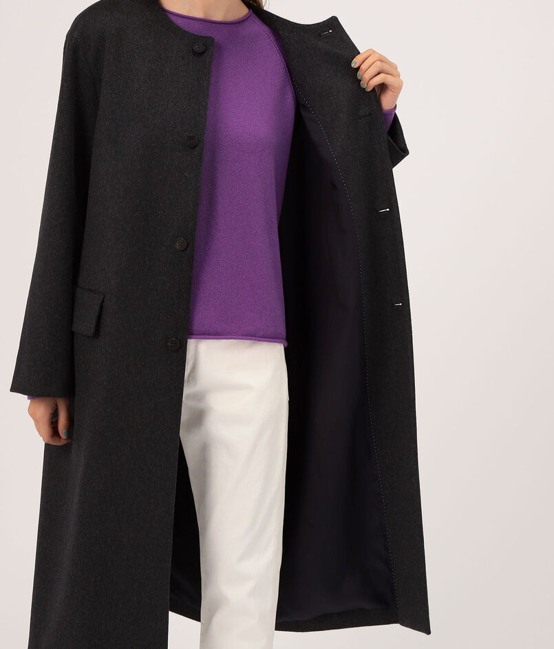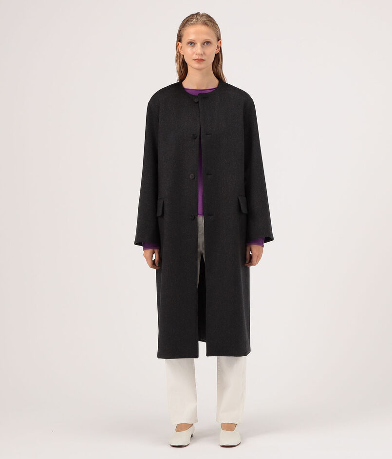 きゅっと詰まったネックラインと膝の隠れる着丈がクラシカルな雰囲気を演出してくれます。