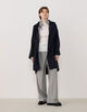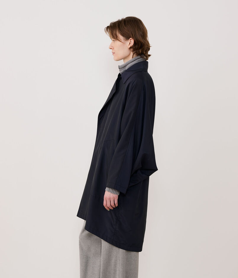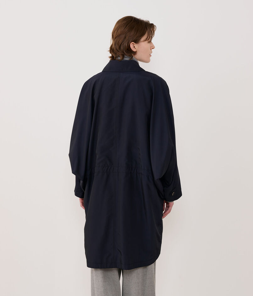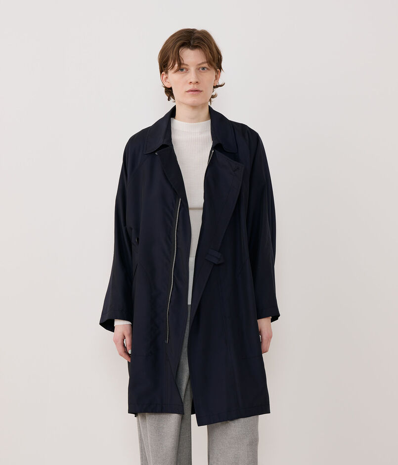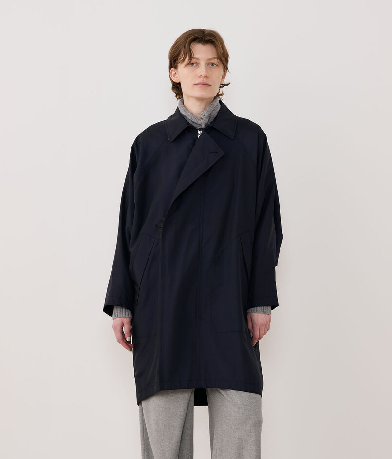 コートはモーターサイクルコートのようにゆったりとしたフォルムがポイント。