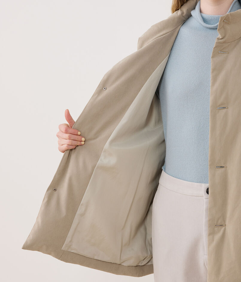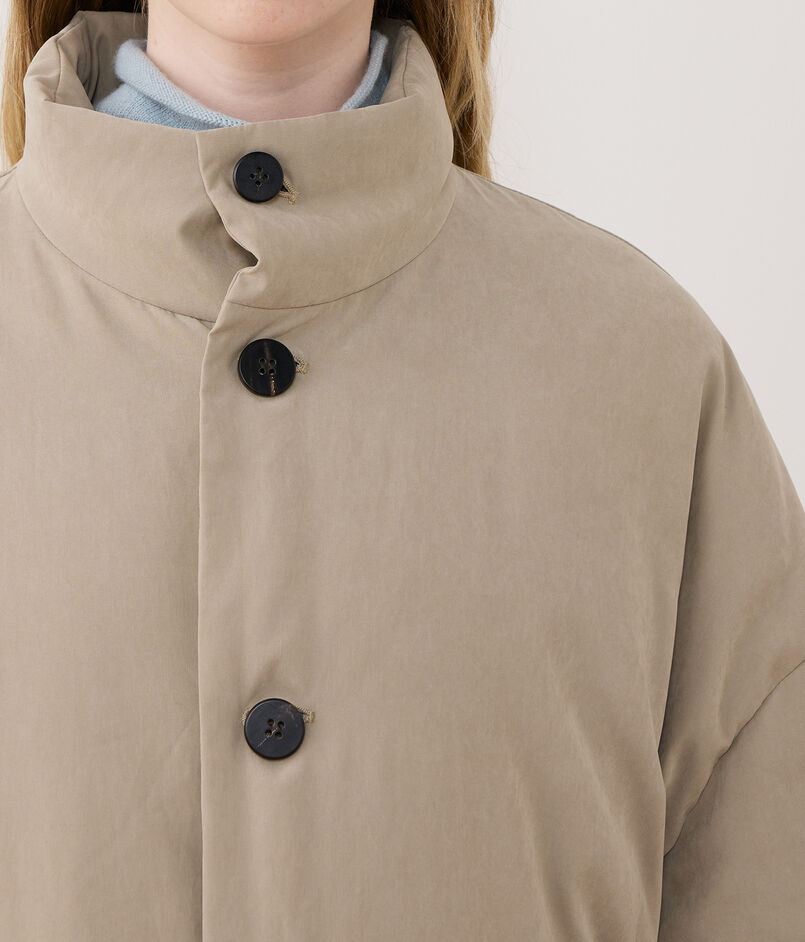 リラックス感のあるシルエットのスタンドカラーオーバーコート。