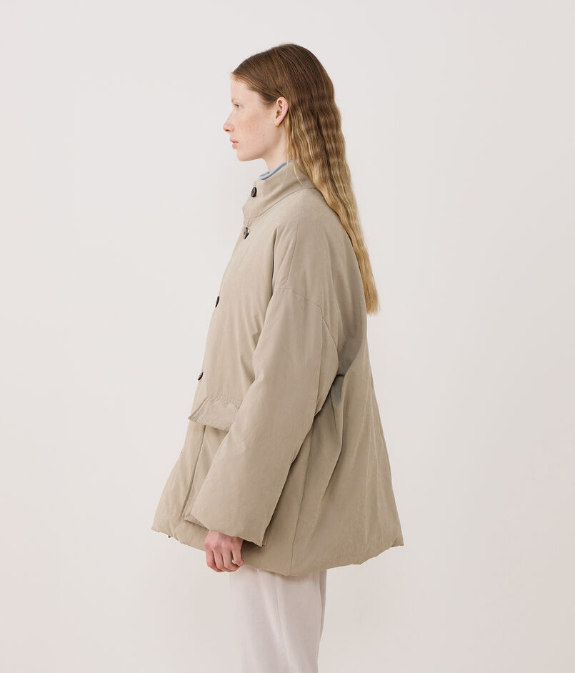 中わたには日本の羽毛ブランドの高品質なリサイクルダウンを使用し、現代の気候に合った暖かいけど暑くない、絶妙なボリュームに仕上げました。