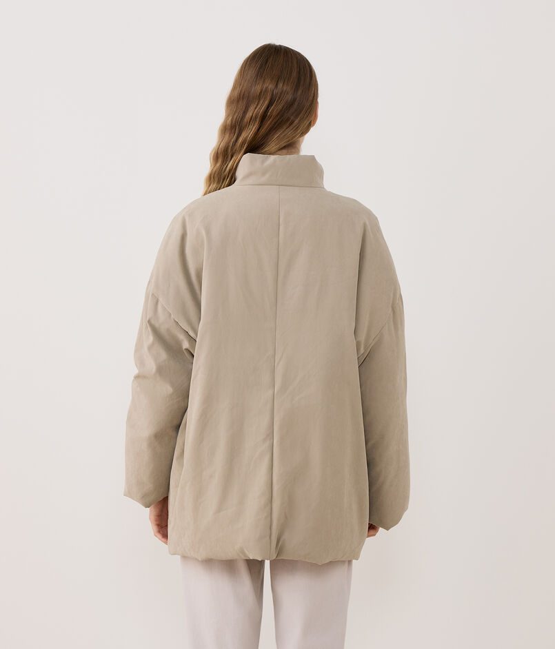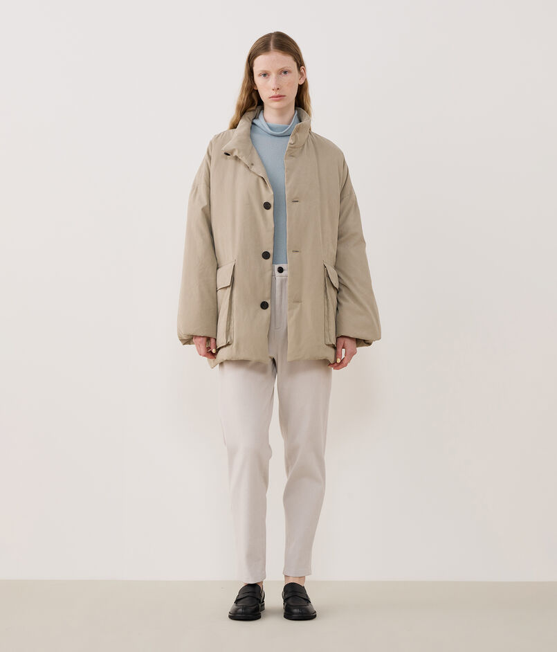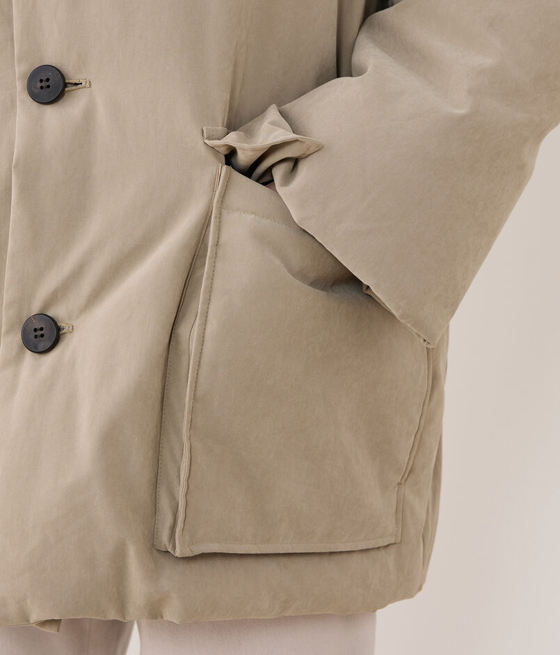 中わたには日本の羽毛ブランドの高品質なリサイクルダウンを使用し、現代の気候に合った暖かいけど暑くない、絶妙なボリュームに仕上げました。