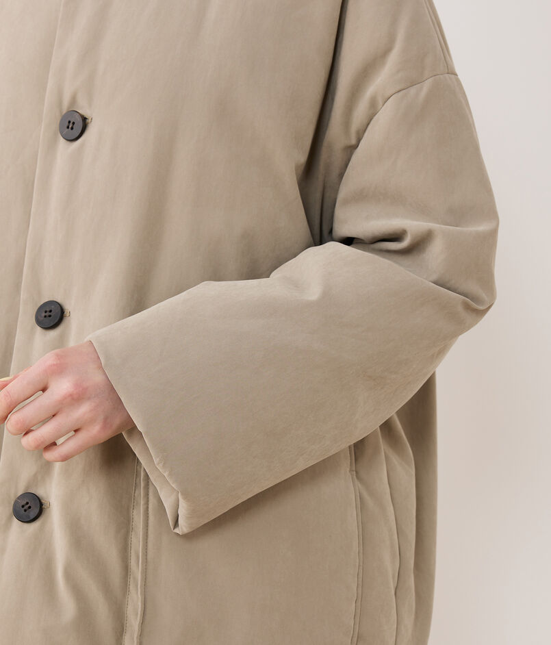 リラックス感のあるシルエットのスタンドカラーオーバーコート。