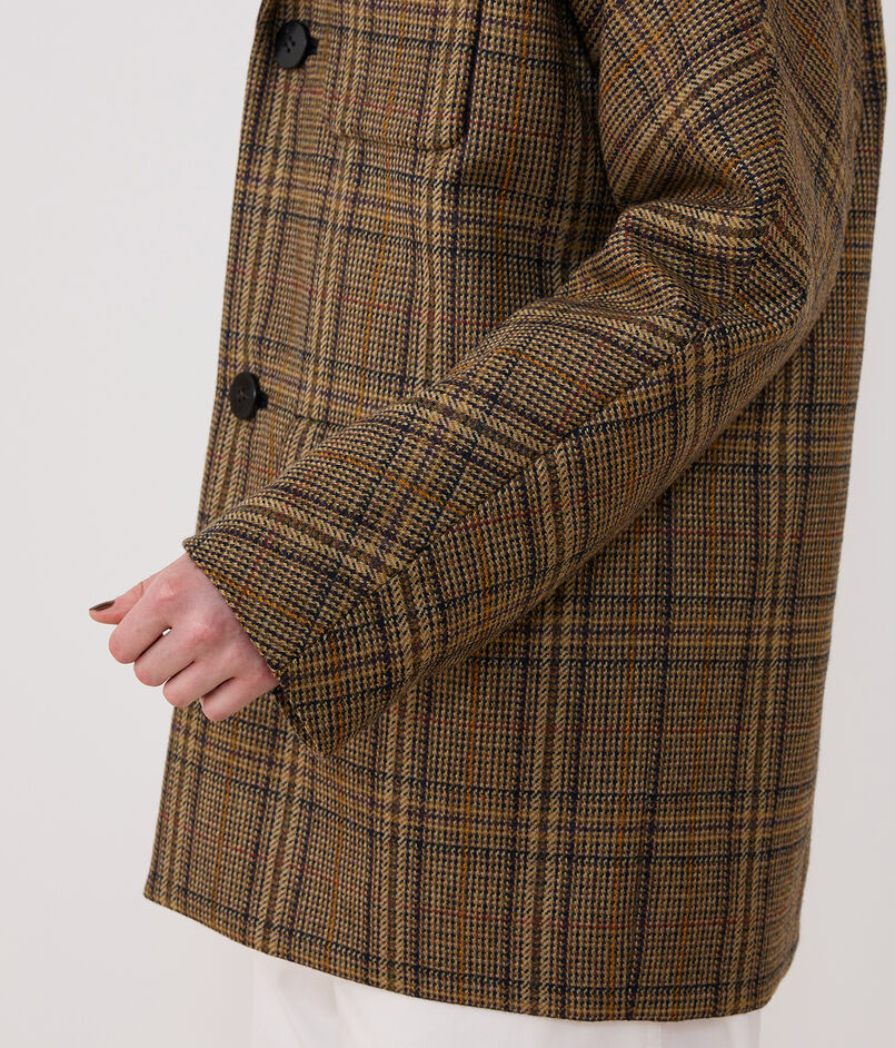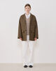コシがあり強い毛質のチェビオット羊毛を原料にした、スコットランド産のツイード素材を使用したコート。