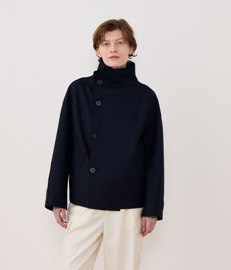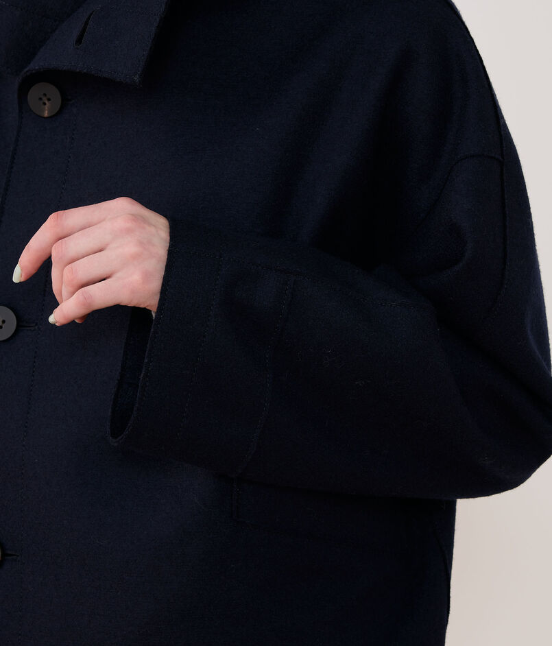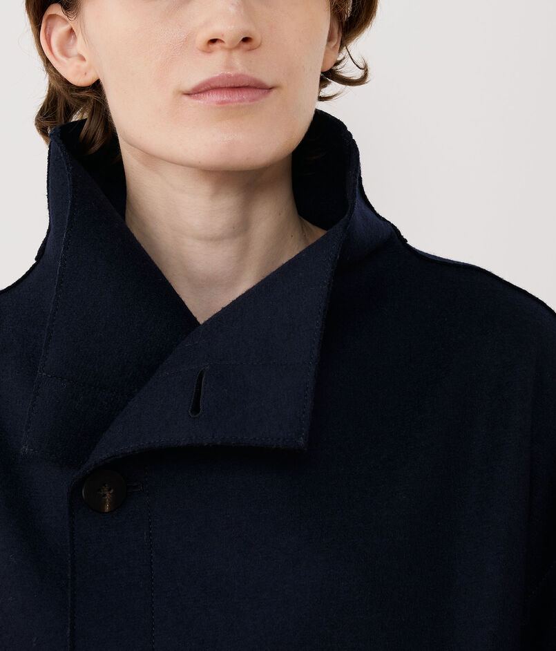 オーバルコートは裾にかけてふんわりと広がる立体感のあるフォルムで、軽やかでさりげない女性らしさを感じさせる一着。