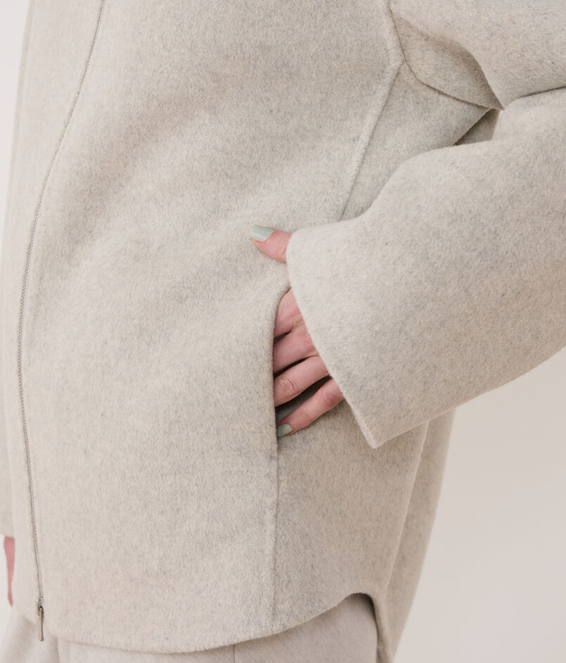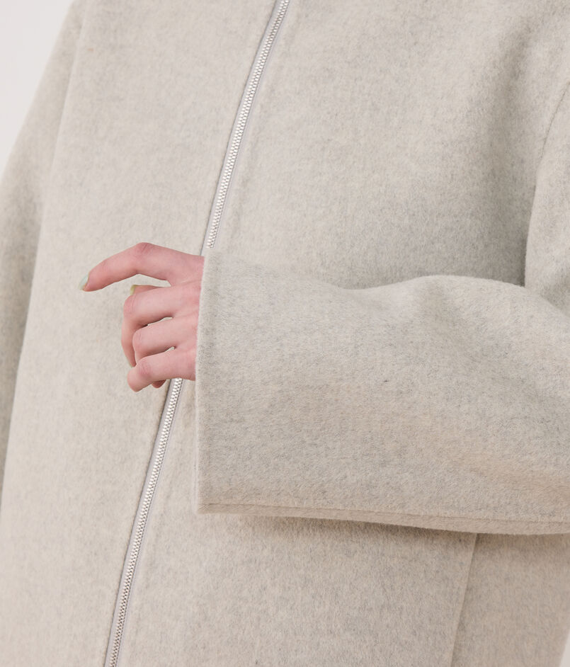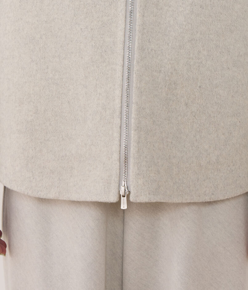 ショートコートは甲羅に包み込まれるような丸みのあるシルエットで、スポーティーな雰囲気と上品な印象を兼ね備えた一着。