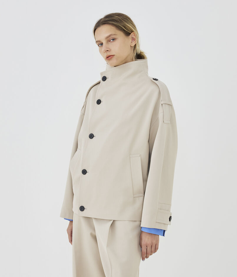 コットンウールギャバジン ハイネックショートコート