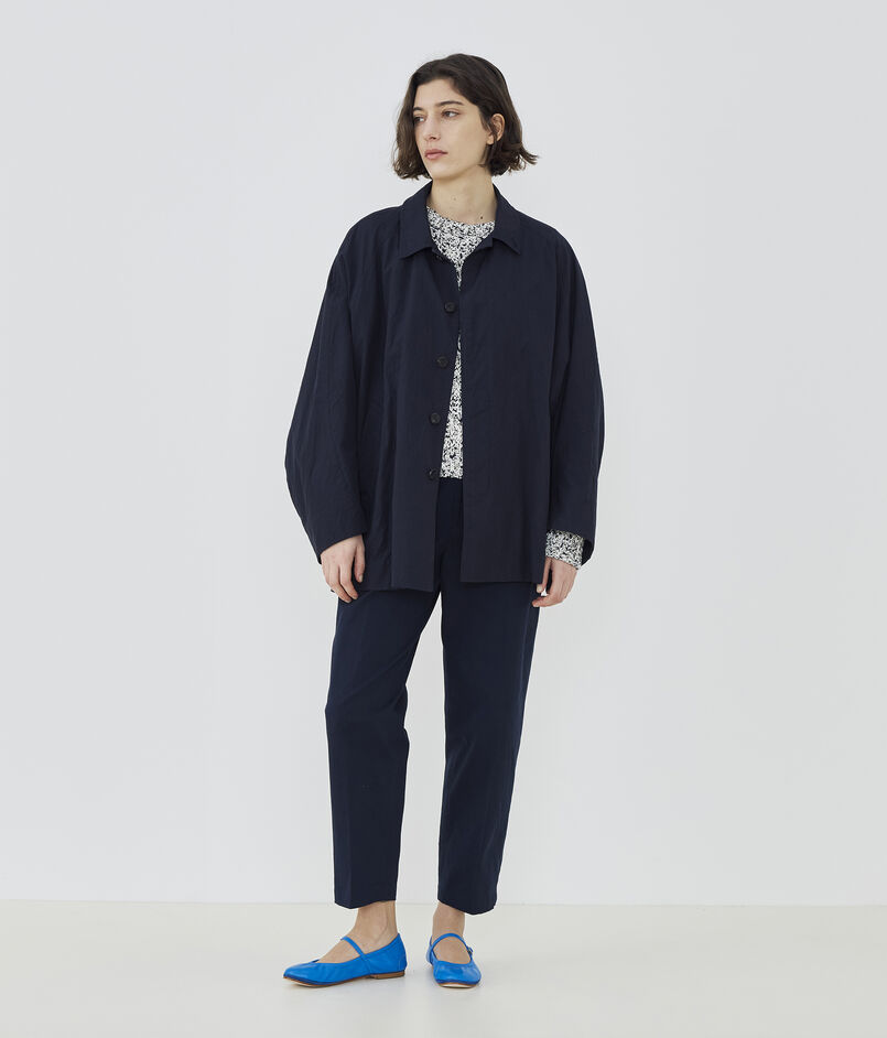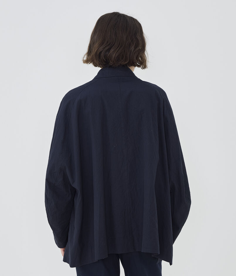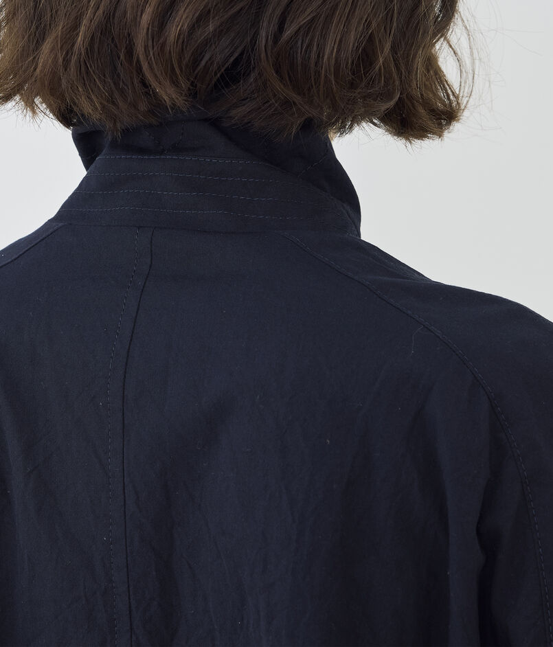 そのまま羽織るだけでもバランスが良く、ボタンをすべて留めてスタンドカラーとしても着用いただけます。