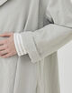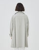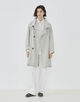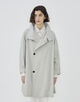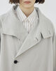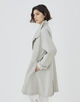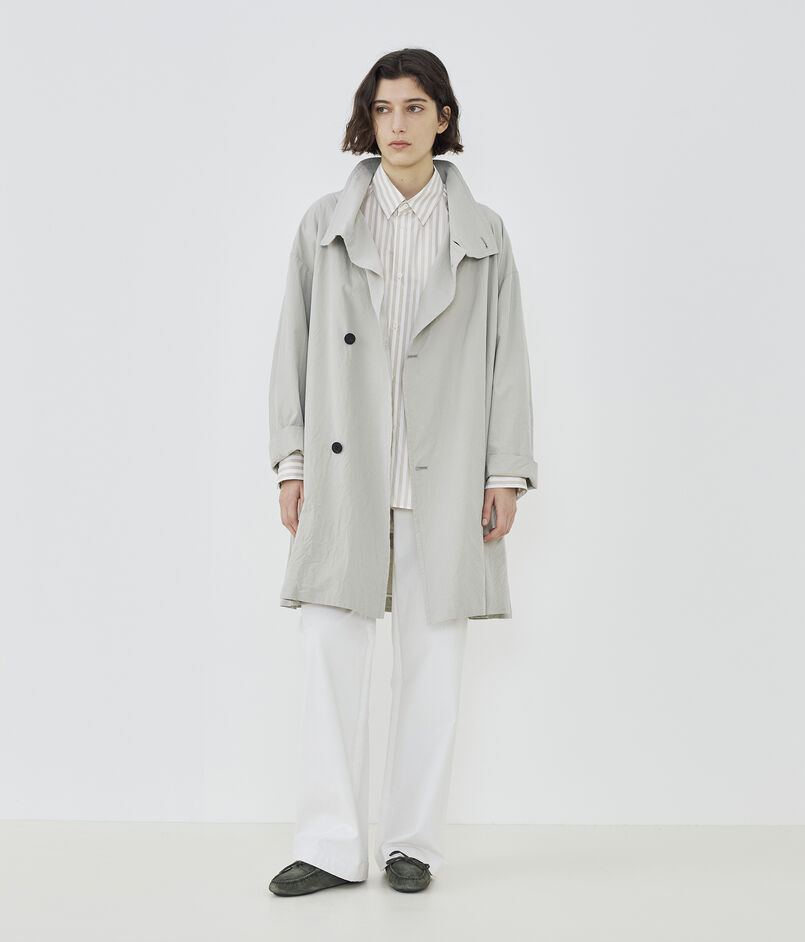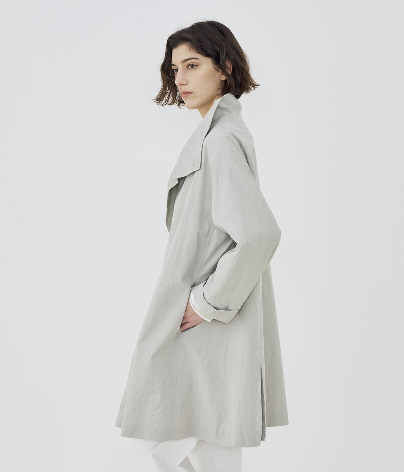 スタンドカラーコートは襟を広げた際のバランスと緩やかなAラインシルエットがポイント。