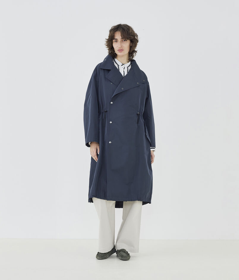 トレンチコートは自然なドレープと丸みのあるボリューム感が特徴の一着。