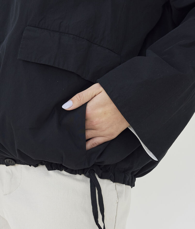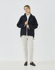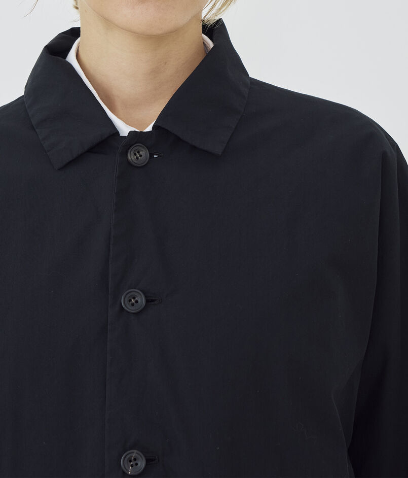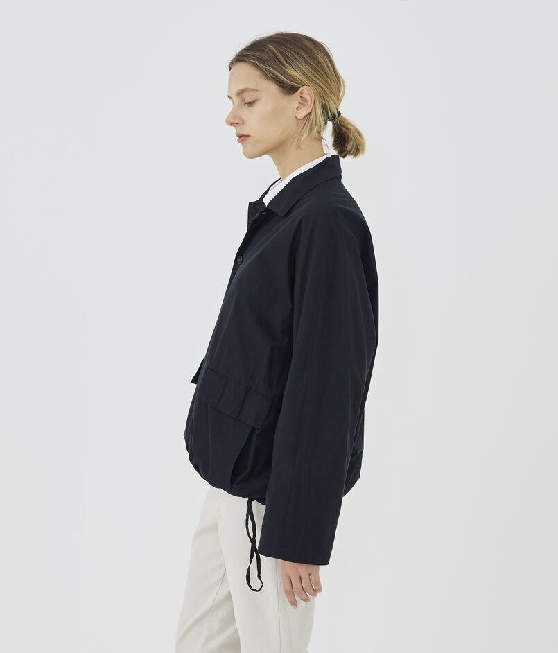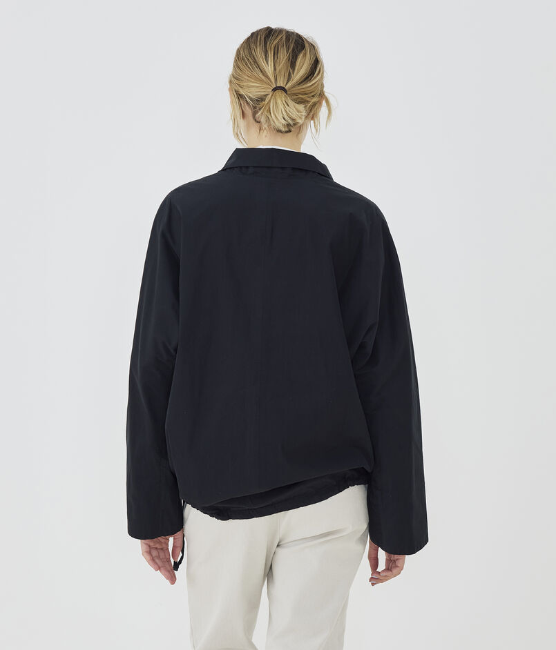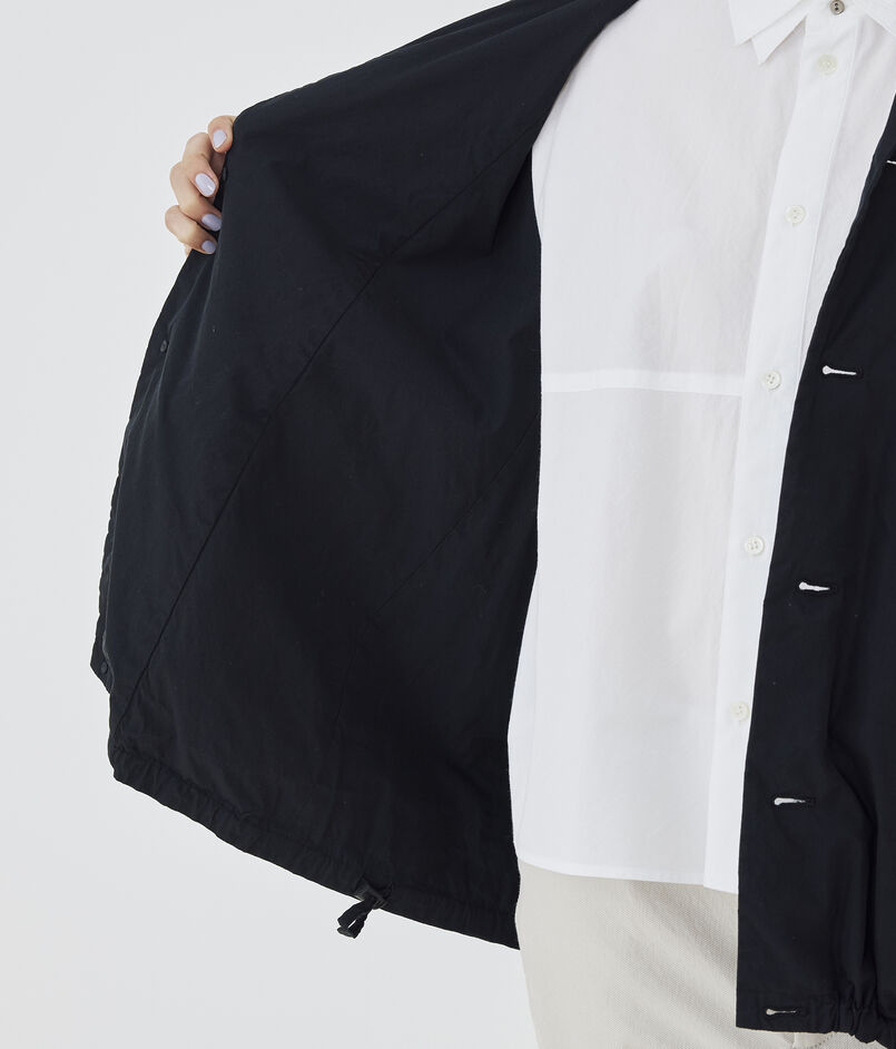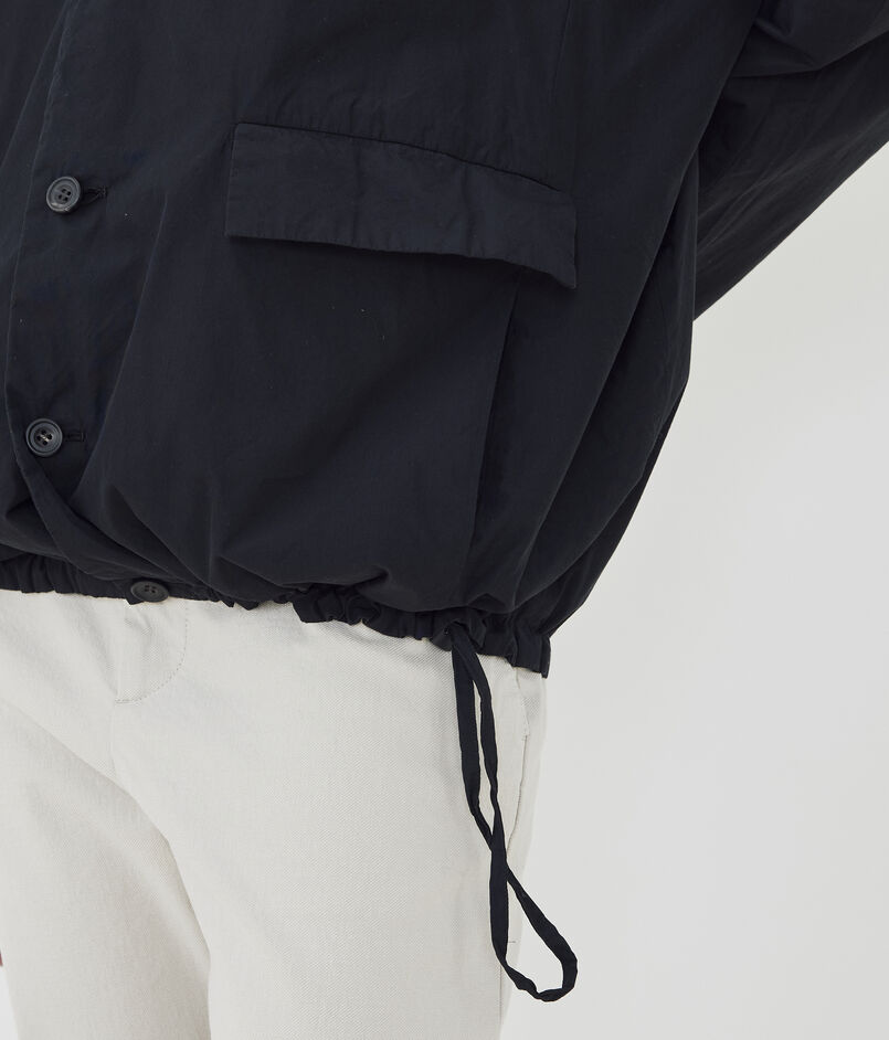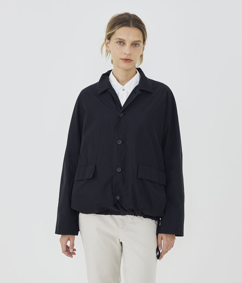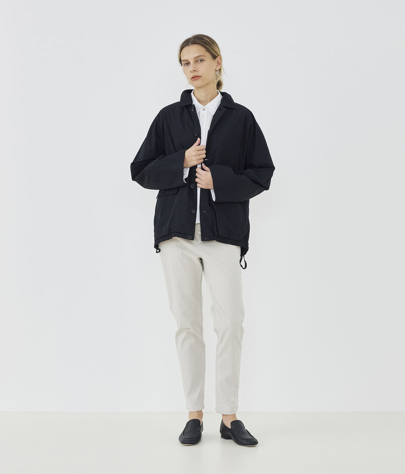 ブルゾンはコーチジャケットの形をベースに、ゆったりとしたドルマンスリーブと裾のギャザーでリラックス感のある立体的なシルエットに。