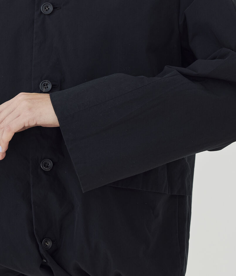ブルゾンはコーチジャケットの形をベースに、ゆったりとしたドルマンスリーブと裾のギャザーでリラックス感のある立体的なシルエットに。
