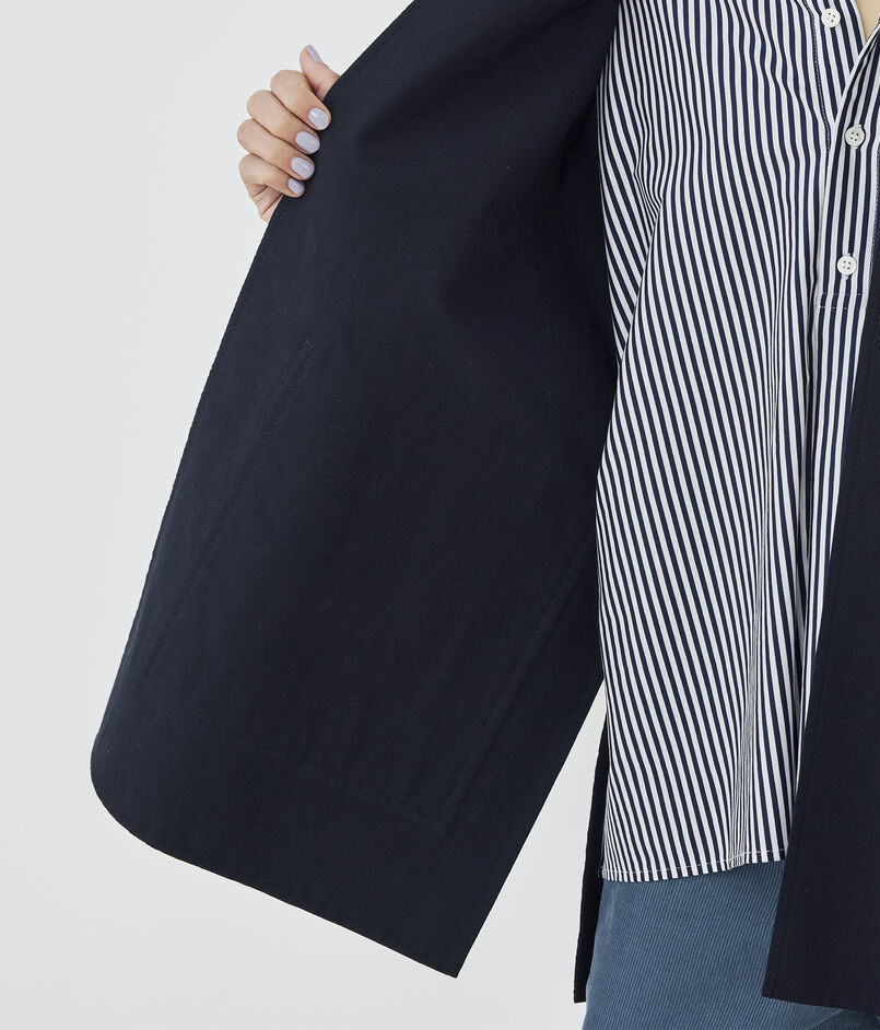 衿まわりやフロント、パッチポケットに施した繊細なハンドステッチで上品なアクセントをプラスしました。