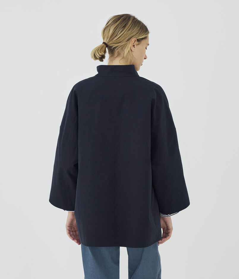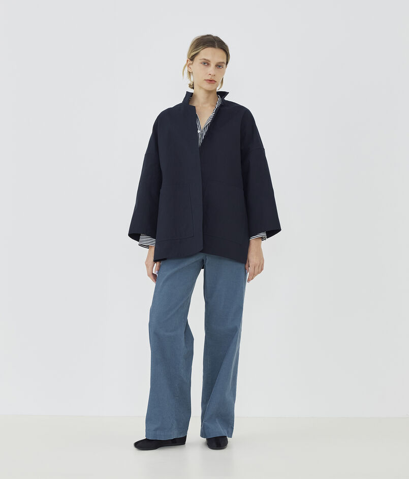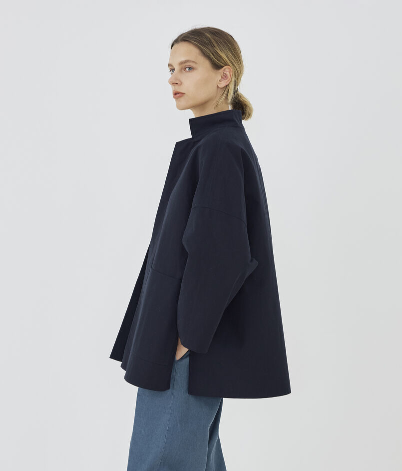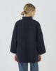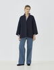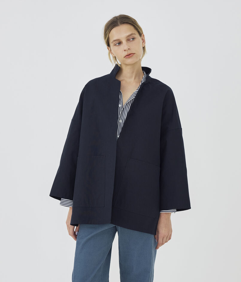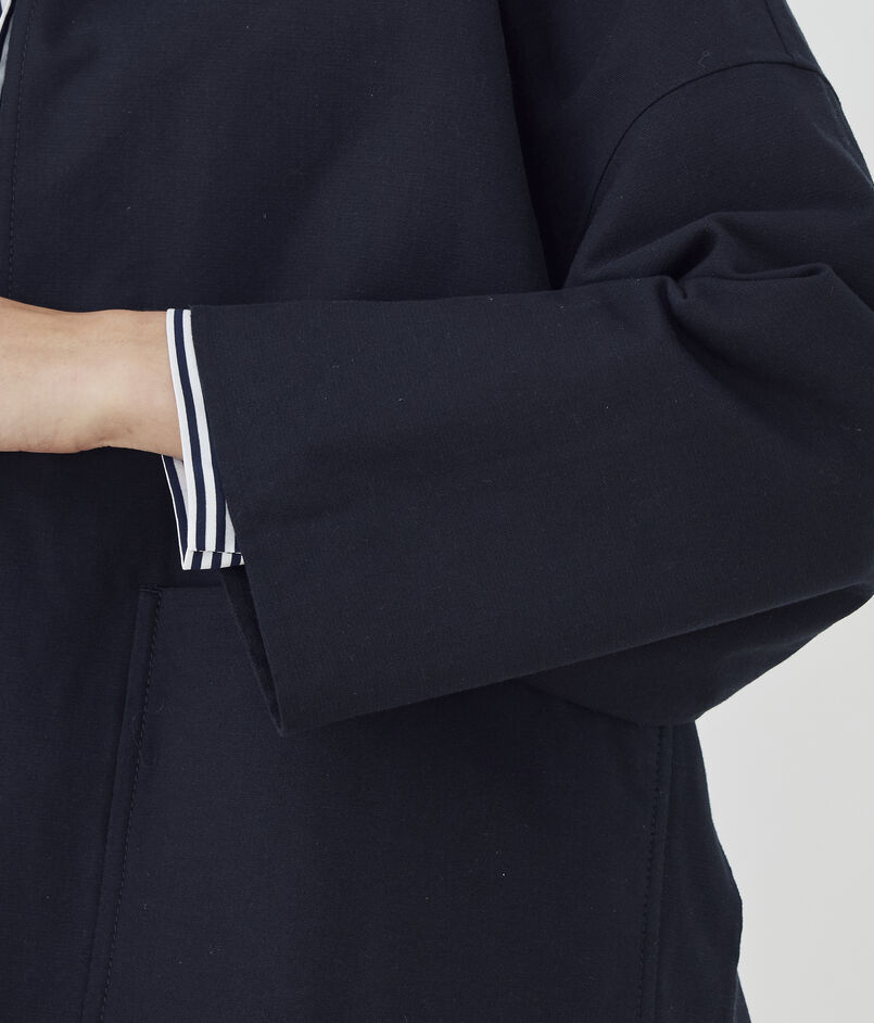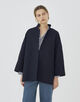 ショートコートはゆったりとしたドルマンスリーブに身体から離れるワイドシルエットでリラックス感のある一着。