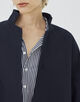 表裏でコットンの番手を変えて二重織りにすることで空気を含んだような軽やかさと適度なハリを両立させています。