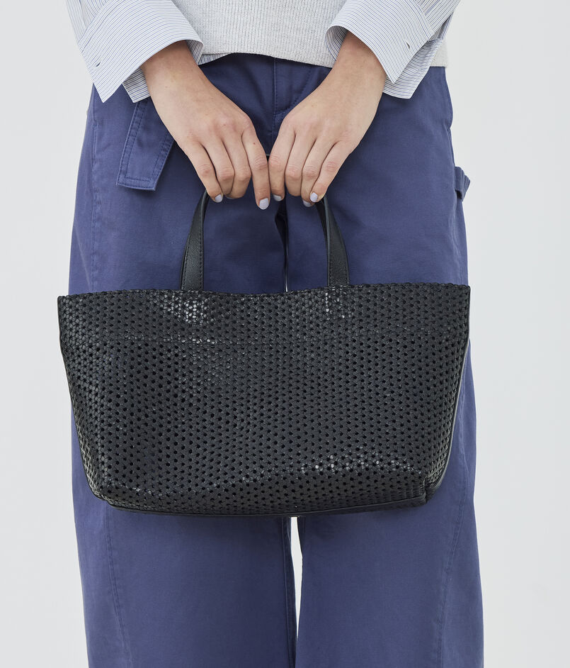 横長のフォルムと短めのハンドルがシックでありながらどこか可愛さもあり、スタイリングのさりげないポイントに。