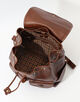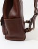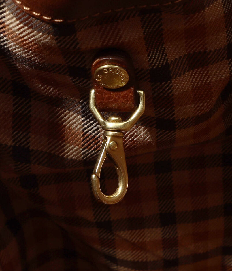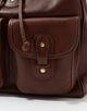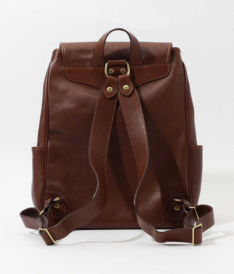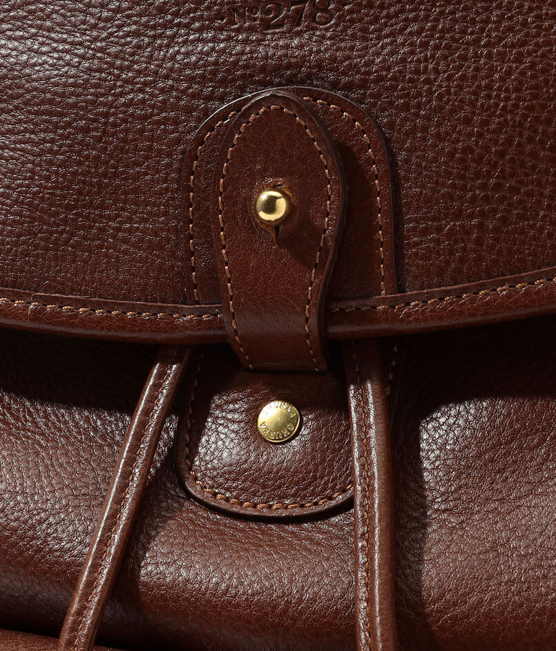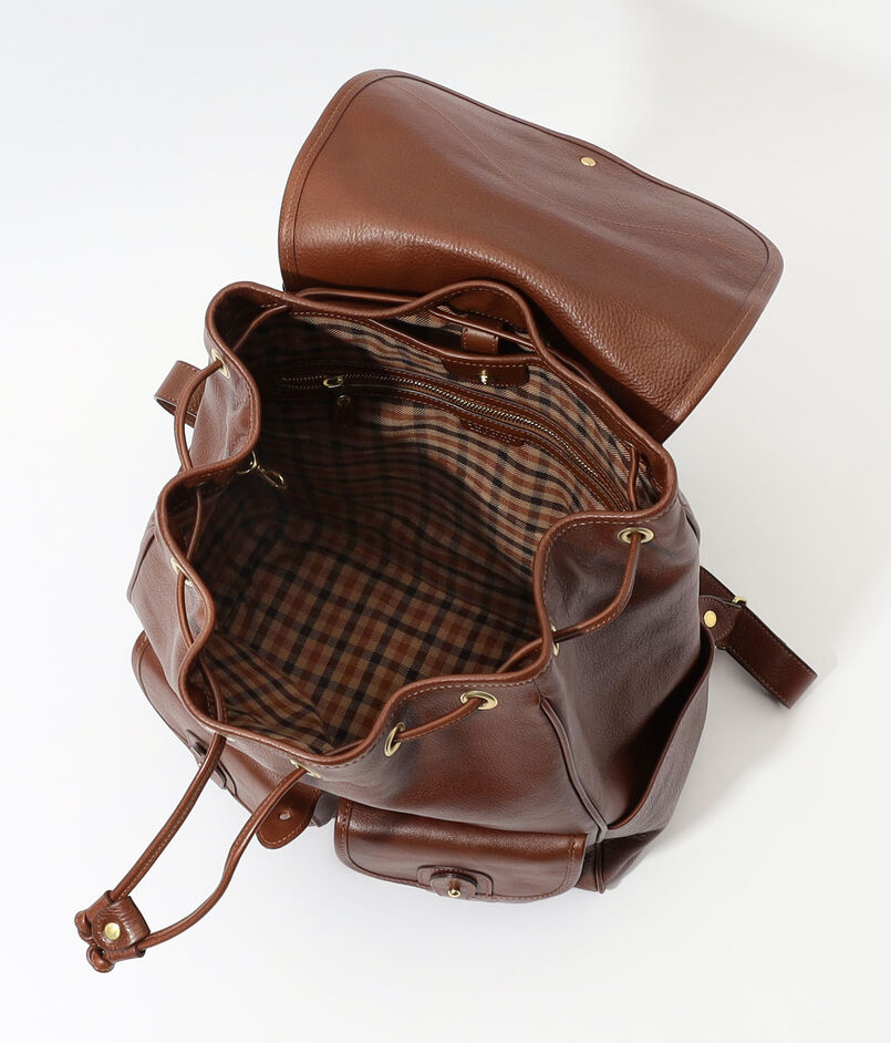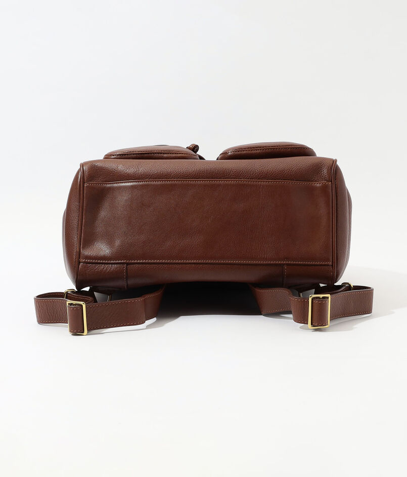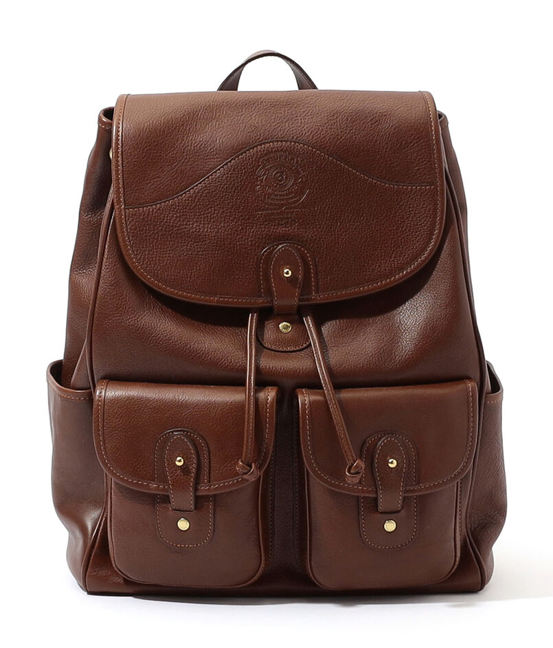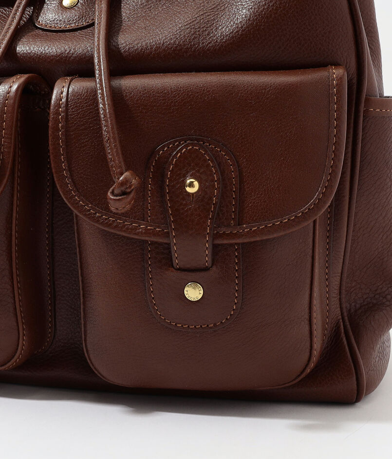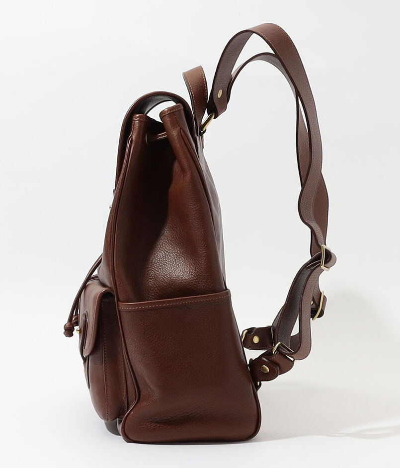 ブランドの象徴であるヴィンテージレザーを贅沢に使用し、武骨なほどの堅牢さと、都市に馴染む洗練された佇まいを両立させました。利便性に優れたドローストリング仕様の開口部に加え、外側には2つのポケット、内側にはノートPC用スリーブを完備。