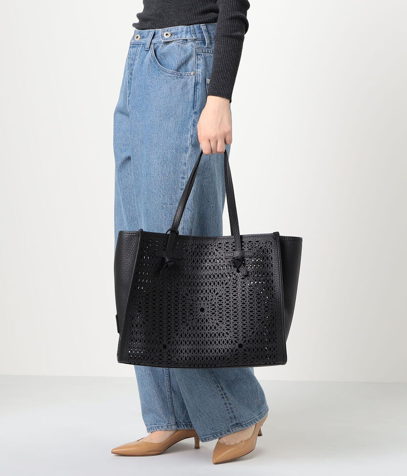 パンチング加工が施されたデザインが個性的な『マルチェラ』トートバッグ。
