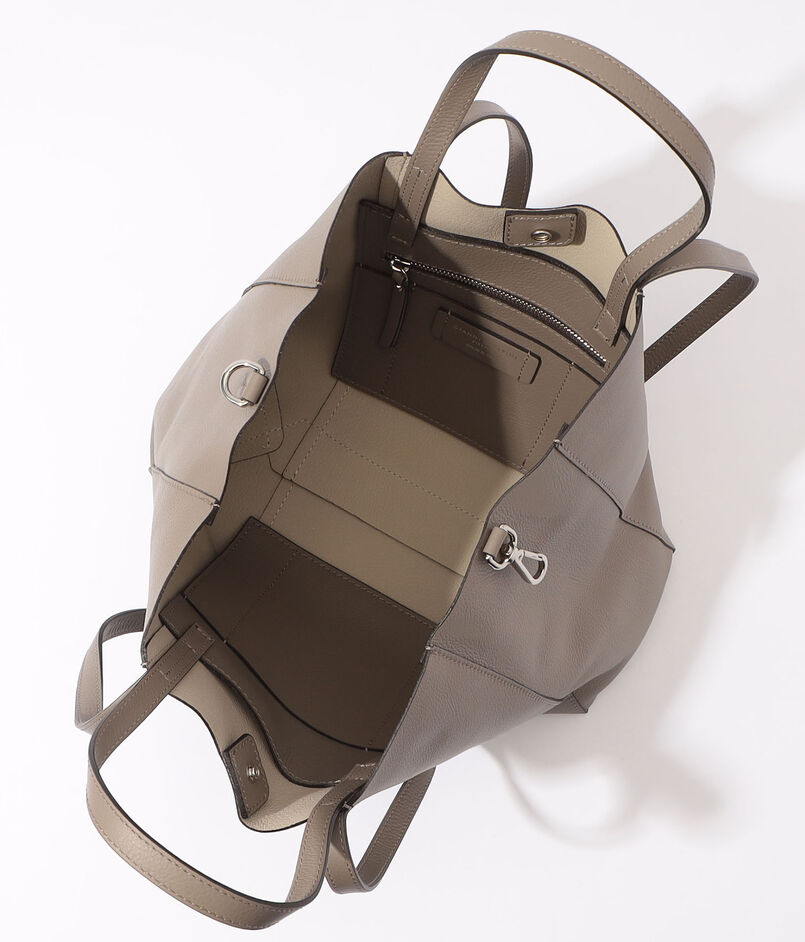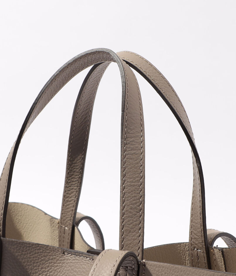 ダブルハンドルで手に持つことも肩掛けも可能、バッグのサイドにフックが付いており、2WAYが可能なので気分に合わせてシルエットを変えられます。