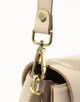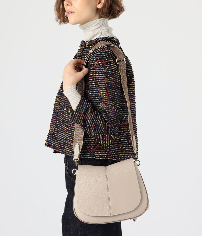 ハンマードレザーを使用した構築的なデザインで、モダンかつグラマラスな雰囲気が魅力のバッグ。