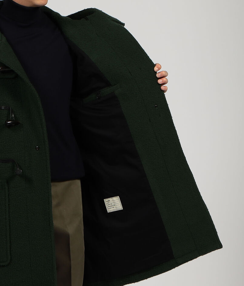 通常は裏地がないダッフルコートがスタンダードですが、あえて裏地をつけて内ポケットを配置し実用性もプラスしています。