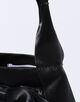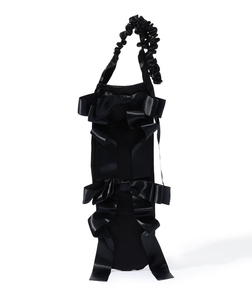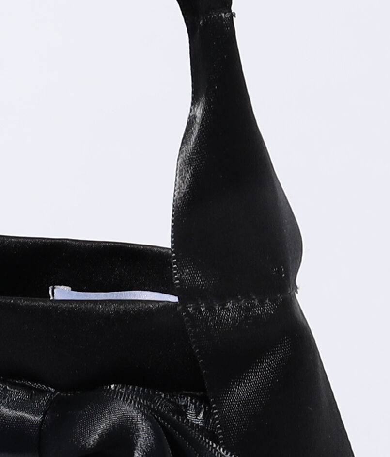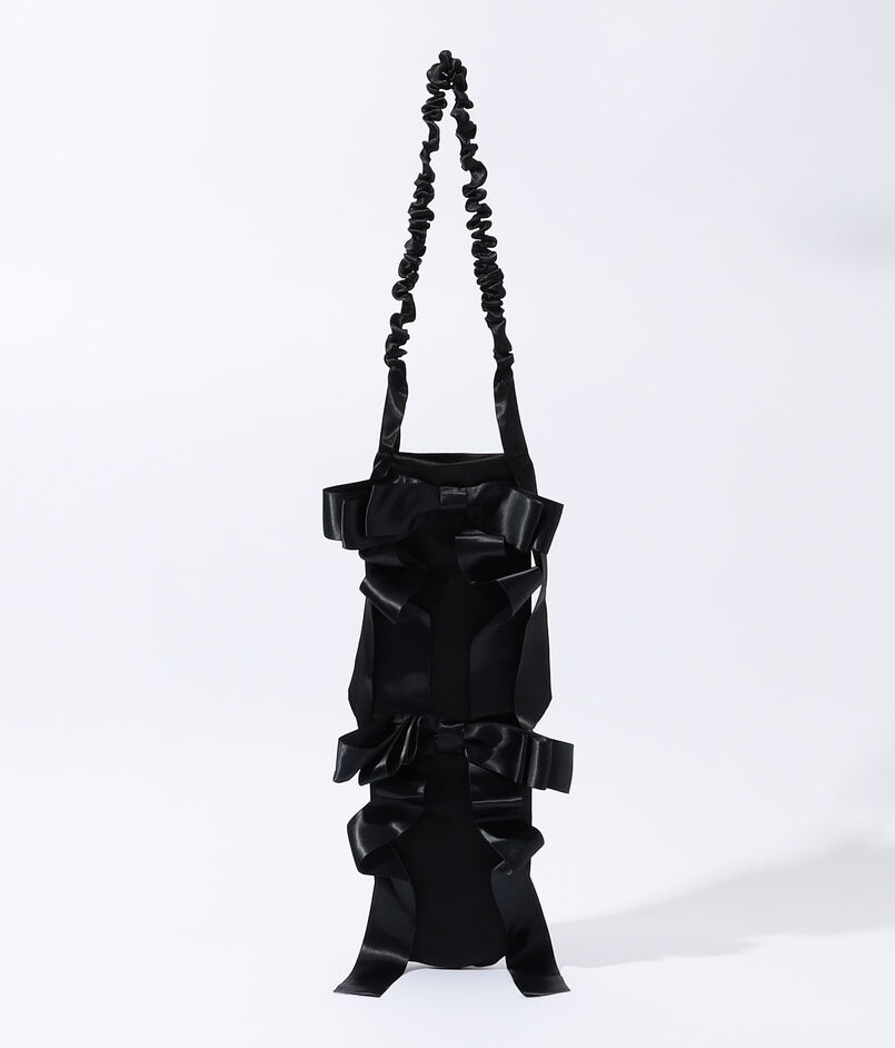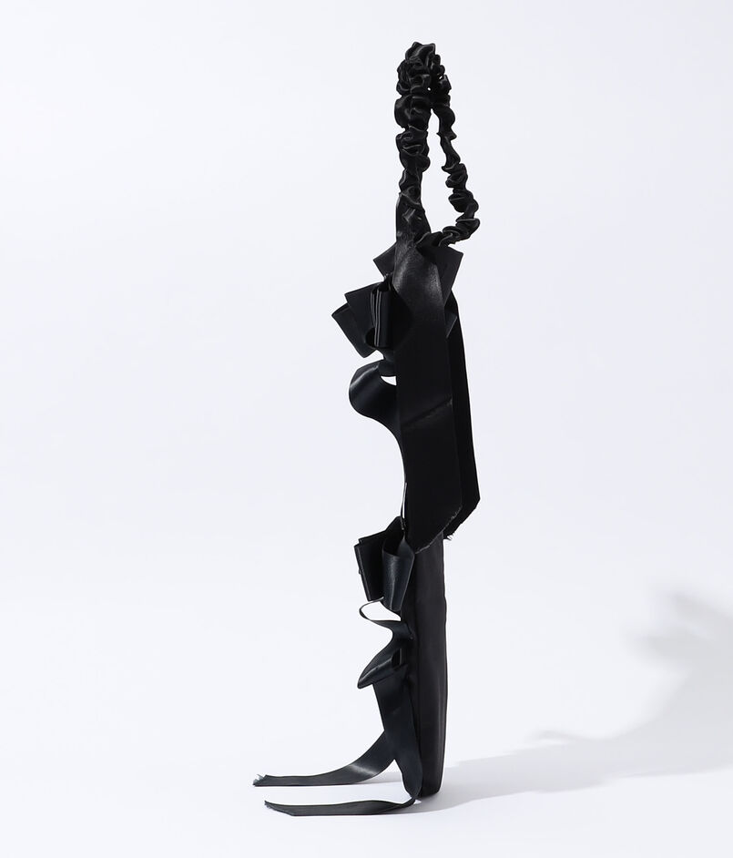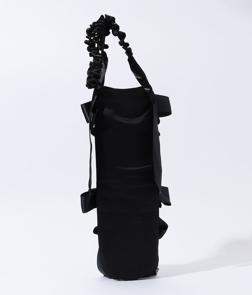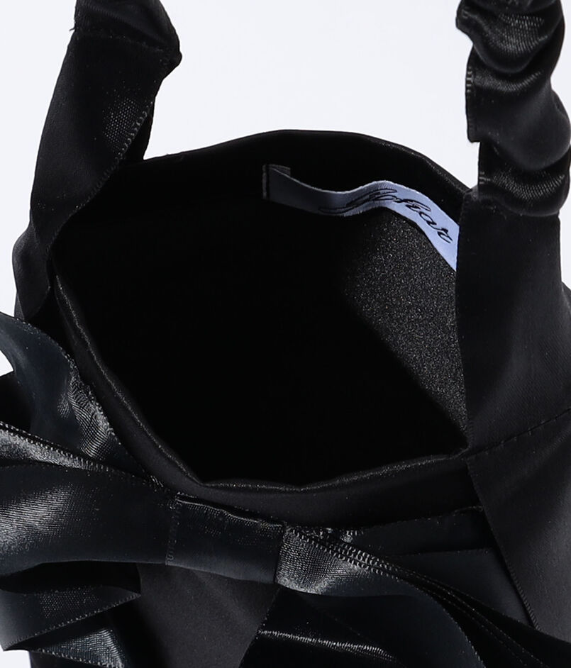 エレガントなサテンリボンで装飾されたバケットバッグ。