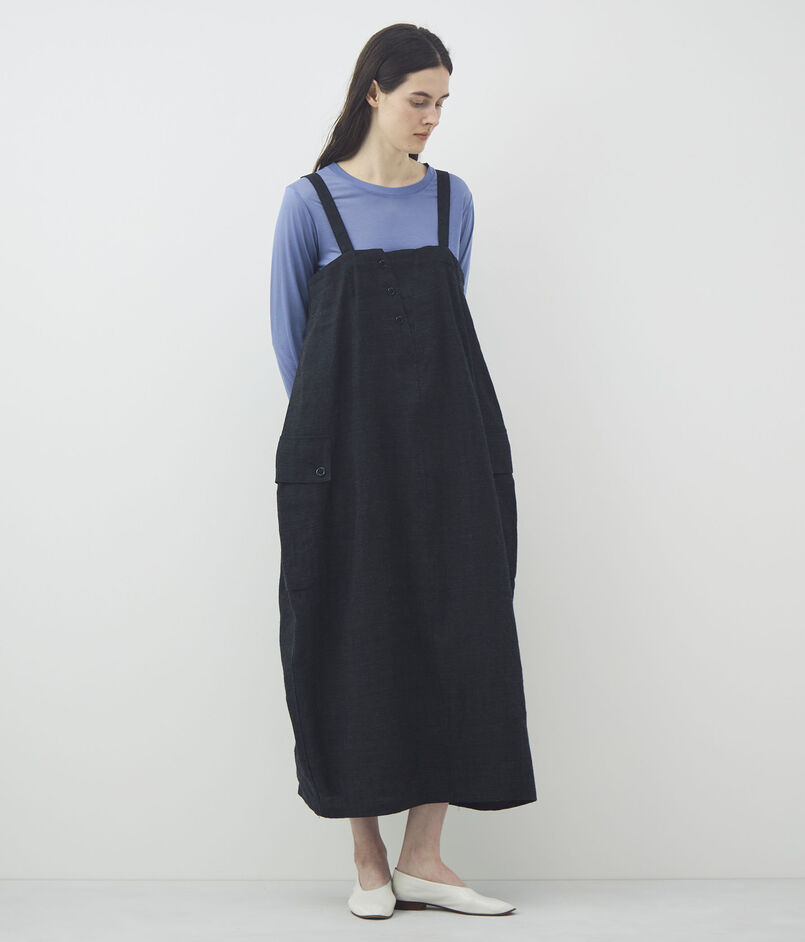 リネン混ならではのナチュラルな風合いが魅力のジャンパースカート。