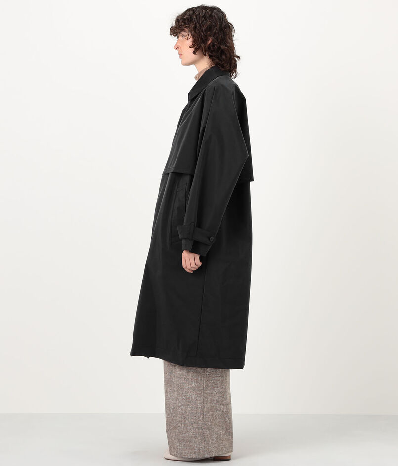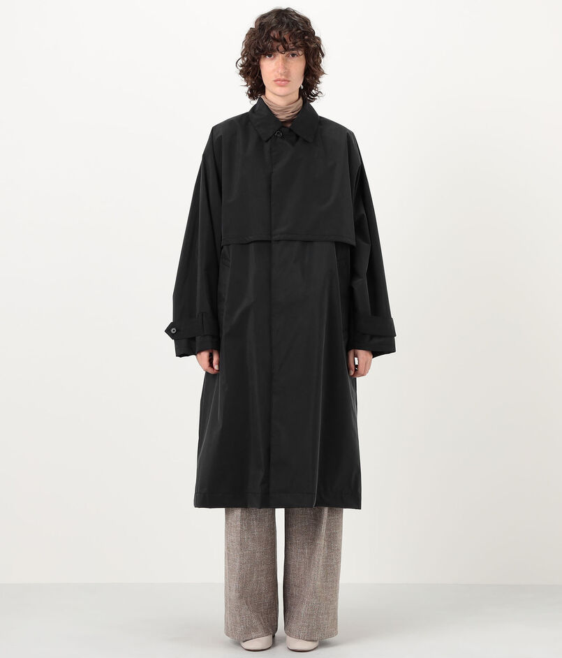 ドルマンスリーブの上身頃と内側のノースリーブの身頃をドッキングして作られたバルカラーコート。