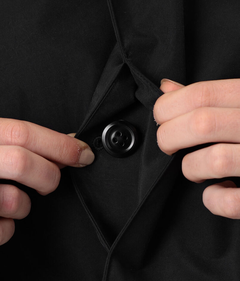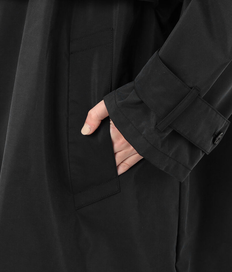 オリジナルのシルクポプリンにウレタンコーティングを施したラグジュアリーな素材がシックな雰囲気を演出。